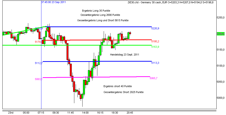 Handelswoche 19 - 23 Sept. 2011 / Gesamtergebnis seit 3. Januar 2011 mit jeweils nur 1 CFD Stück Long /Short
