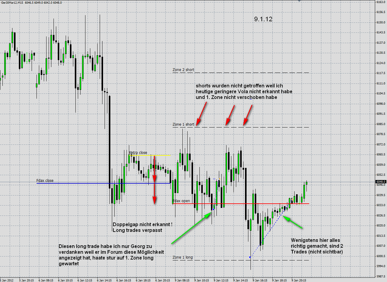 Auch dass die Vola heute gering war hatte ich zu spät bemerkt und zu lange an der 1. Short Zone festgehalten !