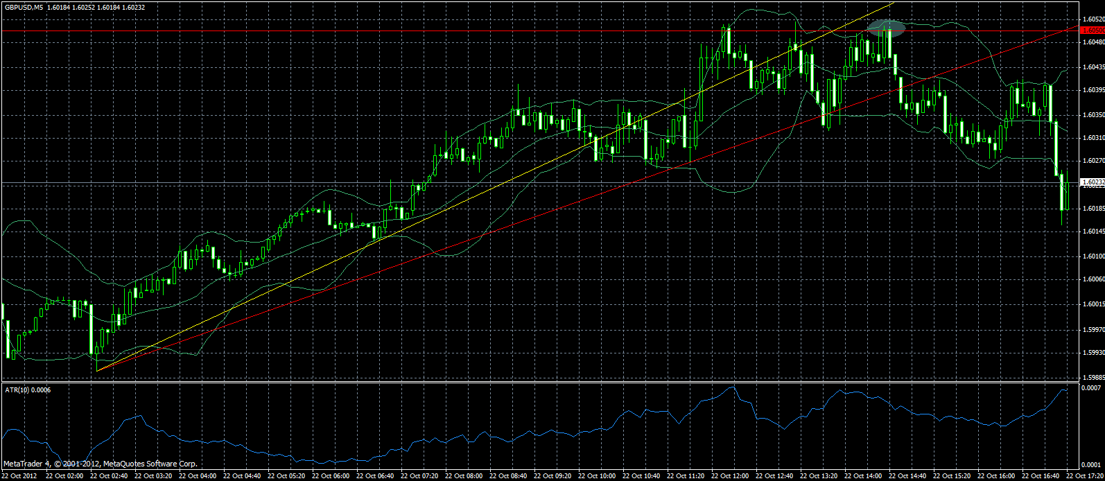 Ich orientiere mich im 5M-Chart, die Trendlinie im 1H war nur zusätzliche Bestätigung. Nachdem SL bei 1,6040 knapp nicht gerissen wurde, habe ich in der nächsten Abwärtsbewegung SL auf Einstand gesetzt und wurde zu Null ausgestoppt. Sehe gerade, dass ursprünglicher SL jetzt gefallen ist, somit muss man - 1IR für die Statistik festhalten. -