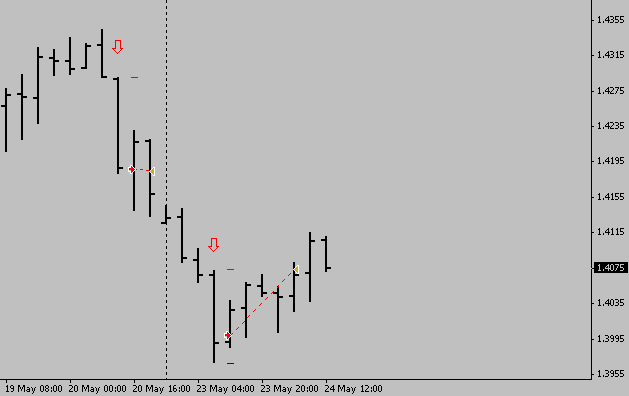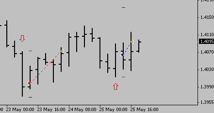 Er geht aber mit + 2 Pip in die Statistik ein, da der Folgebar im Minus lag und nach Rückversetzung des TP dieser später ausgelöst worden wäre.