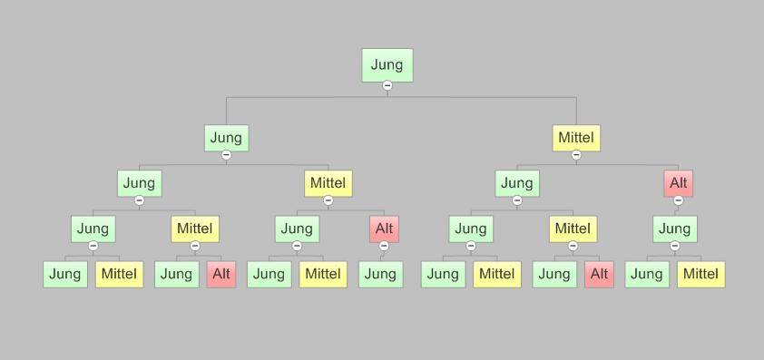 Nun kann es aber auch vorkommen, dass zB. auf Mittel nicht Alt sondern wieder Jung folgt, der Trend ist zu Ende oder dreht sogar.