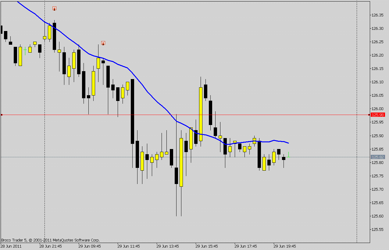 Dazu der 15min Chart von heute. 125.98 habe ich als Linie eingezeichnet