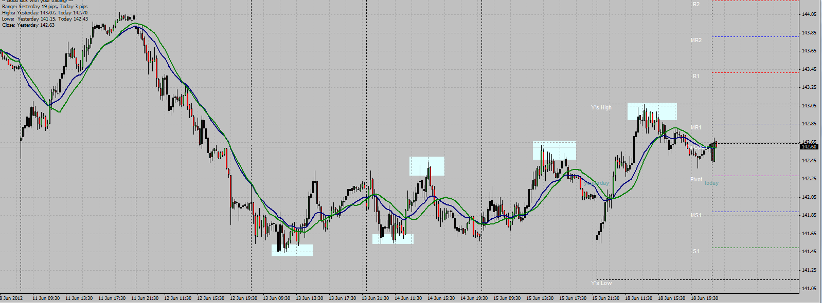 Was auffällt sind die Verlusttrades an den Wendepunkten des Tages. Kann man diese vermeiden? Diskretionär würde ich nicht 3 mal hintereinander versuchen in eine Richtung aufzuspringen, um dann jedesmal ausgestoppt zu werden. Aber wenn man das mit Indikatoren filtern will, wird es wieder sehr undurchsichtig und nicht mehr KISS. Wahrscheinlich vergibt man sich auch gute Trades in Trendphasen.