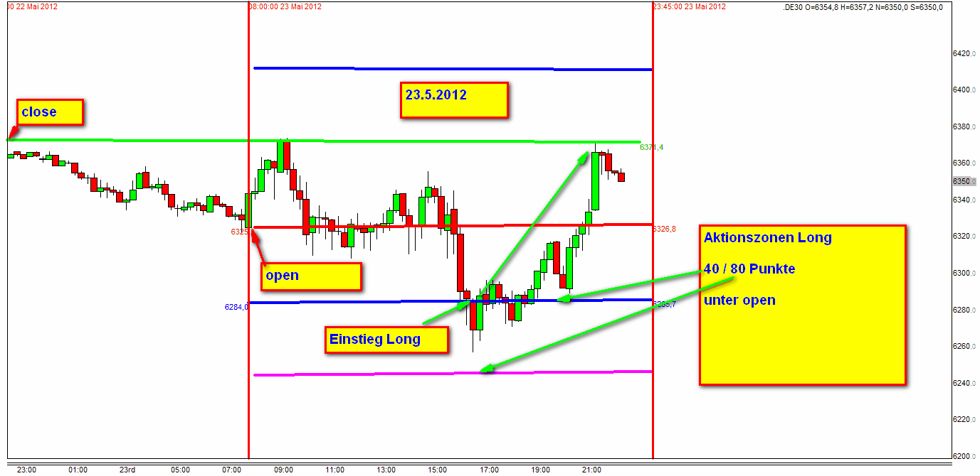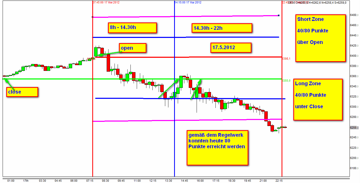 4500 Punkte erzielen. Jeder kann dies leicht nachprüfen und zwar mit dem Close Vortag, Open Handelstag und Einzeichnung der Handelszonen.