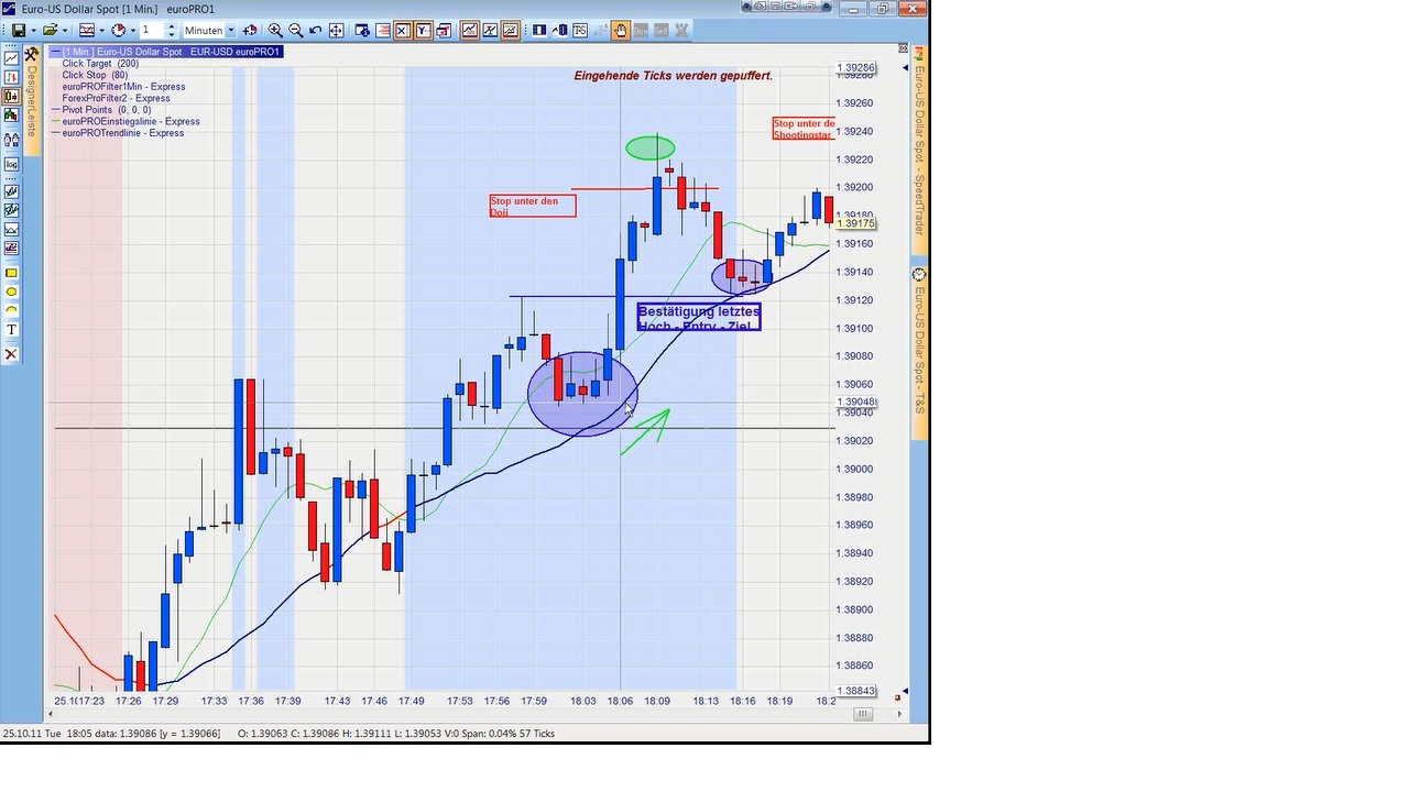 Habe bisher ein kostenloses Echtzeitwebinar mitgemacht. Außer den gleitenden Durchschnitten und dem "Hintergrundindikator" wurden auch etliche Zielbereiche eingezeichnet, die aber, zumindest an diesem Tag, nicht näher erklärt wurden. Übrigens: die gleitenden Durchschnitte von trash passten in diesem Webinar nicht - ich habe heftig experimentiert und bin auf SMA 10 und SMA 22 gekommen, die dem Verlauf am Nächsten kamen. Was hinter dem, sich in der Farbe wechselnden "Hintergrundindikator" verbirgt, konnte ich noch nicht enträtseln (trotz "Wodii
