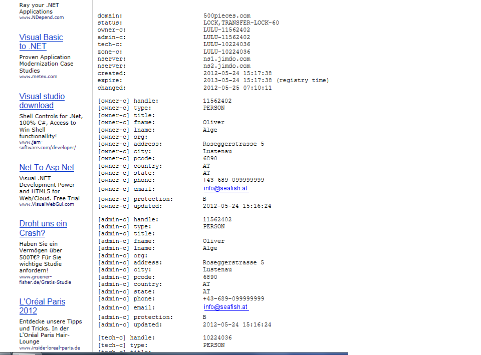 Er scheint ja tatsächlich sowas ähnliches wie einen (vermutlich nicht sonderlich gut laufenden) Schmuck-Shop am Start zu haben, wenn ich bei whois seine Email bei seafish.at sehe. Das ist ja offenbar eine seiner Zweit-Domains.