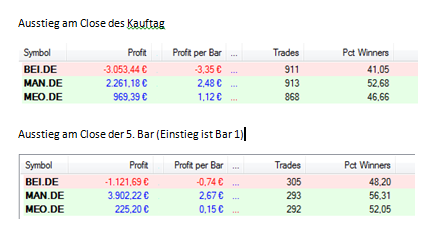 2. Wenn Du einen Test machst wo du nach 5 Tagen aussteigtst, wieso gibt des gleich viele Trades? Werden weitere Positionen eingegangen, wenn schon eine Position offen ist?