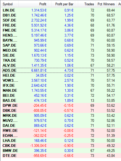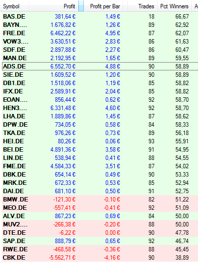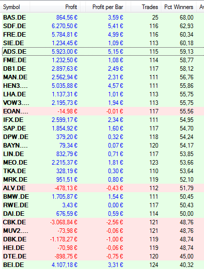 Mir ist bei Deinen Auswertungen aufgefallen, dass der "Average Profit" und "Average Loss" bei Deinen Trades (in einem Dax-Wert) ungefähr gleich (+/- 20% Abweichung) sind.