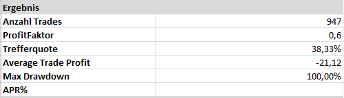 ich hab mal das System mit den Einstellungen über die Daten Dax 30 laufen lassen und die Performance berechnet. - Ernüchternd. Ich brauche einen Trendfilter.