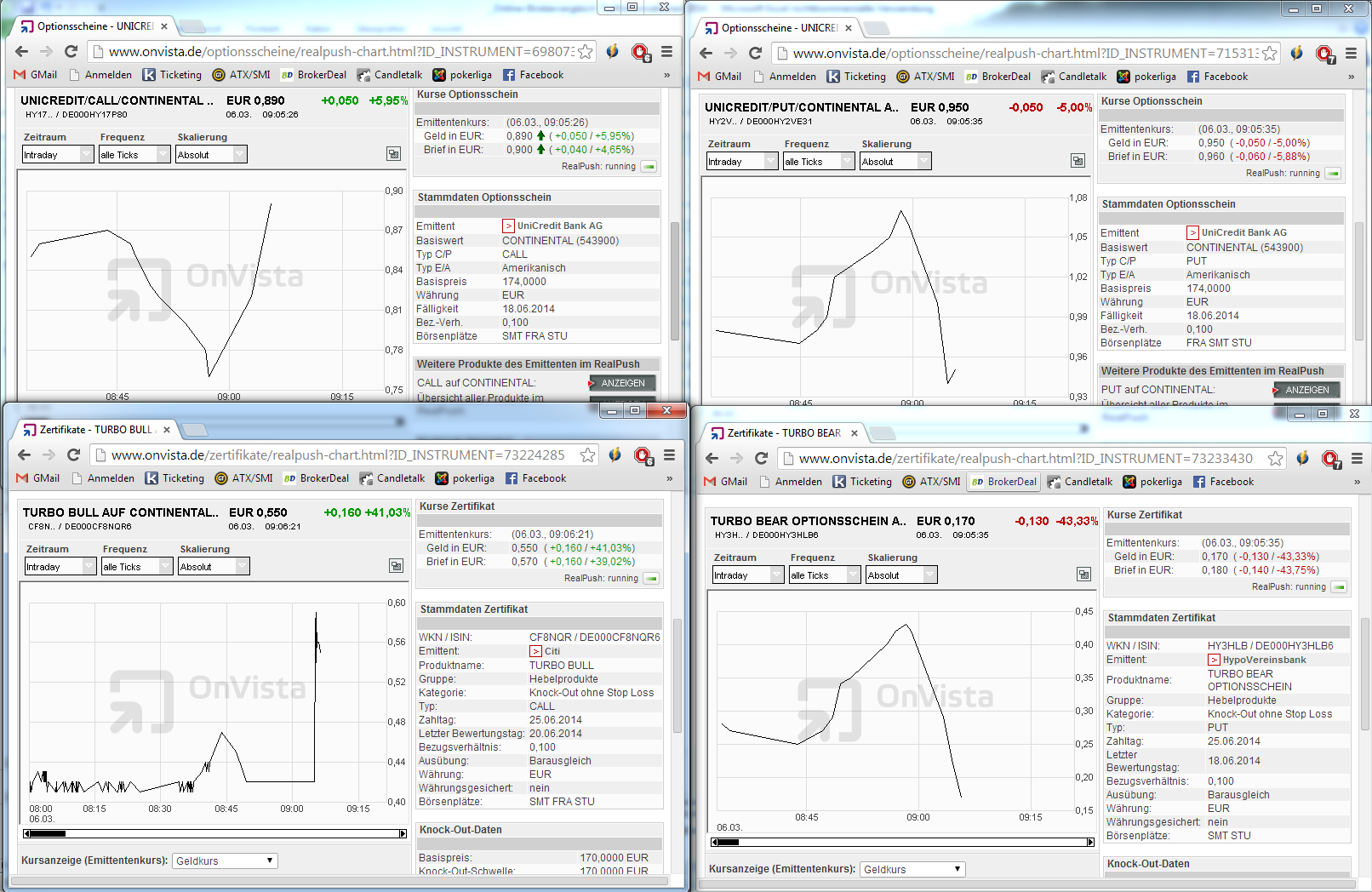 Am angenehmsten für mich wäre natürlich, das Spiel mit riskanten Nebenwerten mit CFDs mit garantiertem Stopp durchzuziehen. Allerdings müssen hierfür die Stopps meistens ein ganzes Stück entfernt angelegt werden mindestens, bei IG etwa 5%. Das schützt dann halt wirklich nur vor ganz extremen Gaps. Meinen "normalen" CFD-Long auf Continental habe ich gerade aufgelöst zu 176,1€ = +1,7%. Kaufe gerne vor News wenn optisch so billig geworden zum Schlusskurs wie CON gestern.
