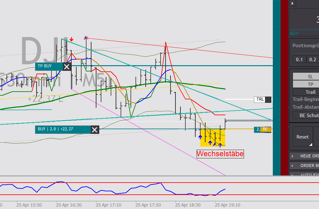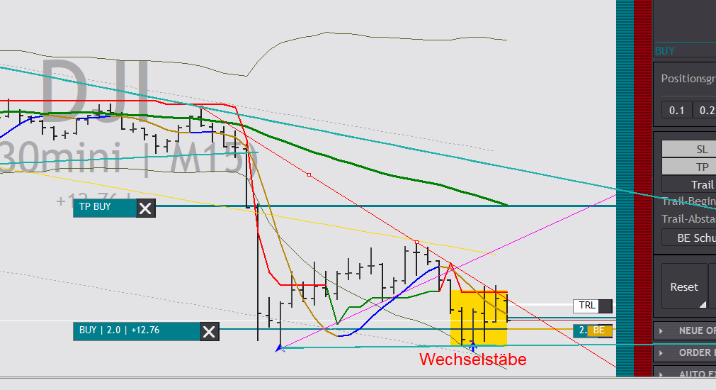 Also Ziel (TP) sollte ein möglicher Widerstand sein, im aktuellen Fall war es der 50er Gleitende Durchschnitt.