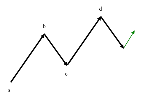 Also, die ABCD-Formation ist eine Erweiterung der klassischen ABC-Formation der Charttechnik. Also bei der ABC-Formation liegt Punkt A an einem Tief, Punkt B ist das darauf folgende Hoch und Punkt C ist ein weites Tief, das aber höher als das Tief von Punkt A liegt. So weit so gut. Die kleinstmögliche ABC-Formation ist ein Insidebar. Der Punkt D entsteht nur, wenn nach einem neuen Hoch über Punkt B ein Korrekturstab gebildet wird. Idealerweise sollte das mit wenigen Folgestäben geschehen. Tiefere Tiefs sind dabei nicht erforderlich. Eine Position wird beim Überschreiten des Hochs vom Korrekturstab, der hinter Punkt D liegt eröffnet. -