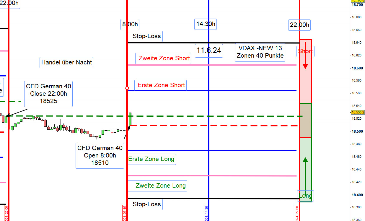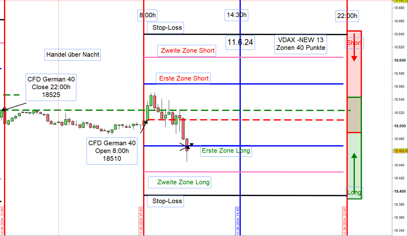 Die Position an der zweiten Zone Long wurde nicht eröffnet und zwar sollte hin zu Mittag im Tandem mit den DOW CFDs gehandelt werden und diese waren sehr negativ. -