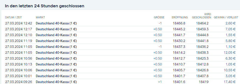Position Short an erster eröffnet.