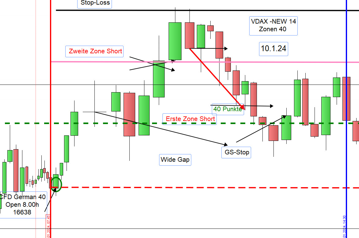 Das kann man so sehen jedoch, die Charts im Strategie Regelwerk sind vom Januar 2022. Der DAX notierte um die 12500 und die Volatilität war bedeutend höher. Es ist heute nicht angemessen, eine Position an der ersten Zone mit SK-Stop zu schließen , denn darüber gibt es noch die zweite Zone mit hoher Gewinnquote.