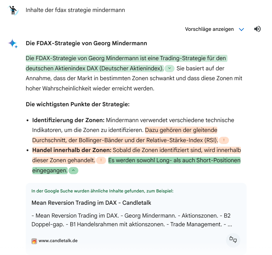 Über die Google KI Gemini. Ich beobachte seit anderthalb Jahren die Entwicklung von KI-Systemen, angefangen mit chatGPT. Und hatte dabei schon einige Gänsehaut Momente. Gemini hat vor 2 Wochen einen Sprung gemacht. Dort wurde mir als Quellenangabe der Link zu candletalk angegeben als ich etwas über die FDAX-Trading-Strategie erfahren wollte. Ich finde die Entwicklung spannend.