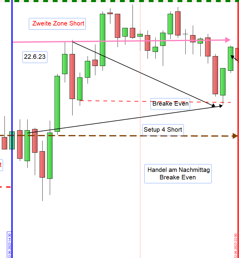 Nun zu dem Breake Even. Wie vom eingefügten Chart vom 22.6. 23 zu ersehen ist, wurde dieser in der Vergangenheit schon öfters dokumentiert,