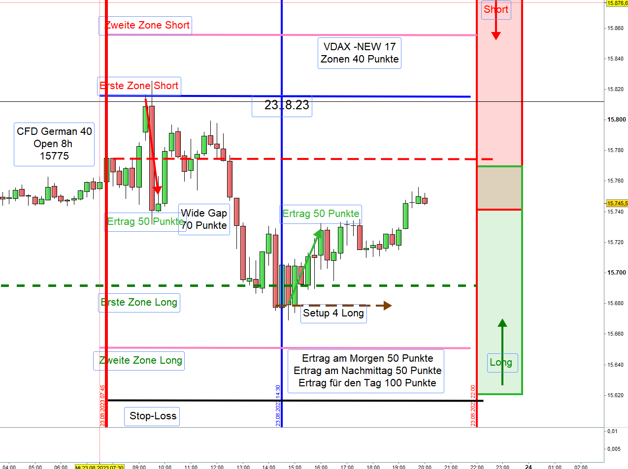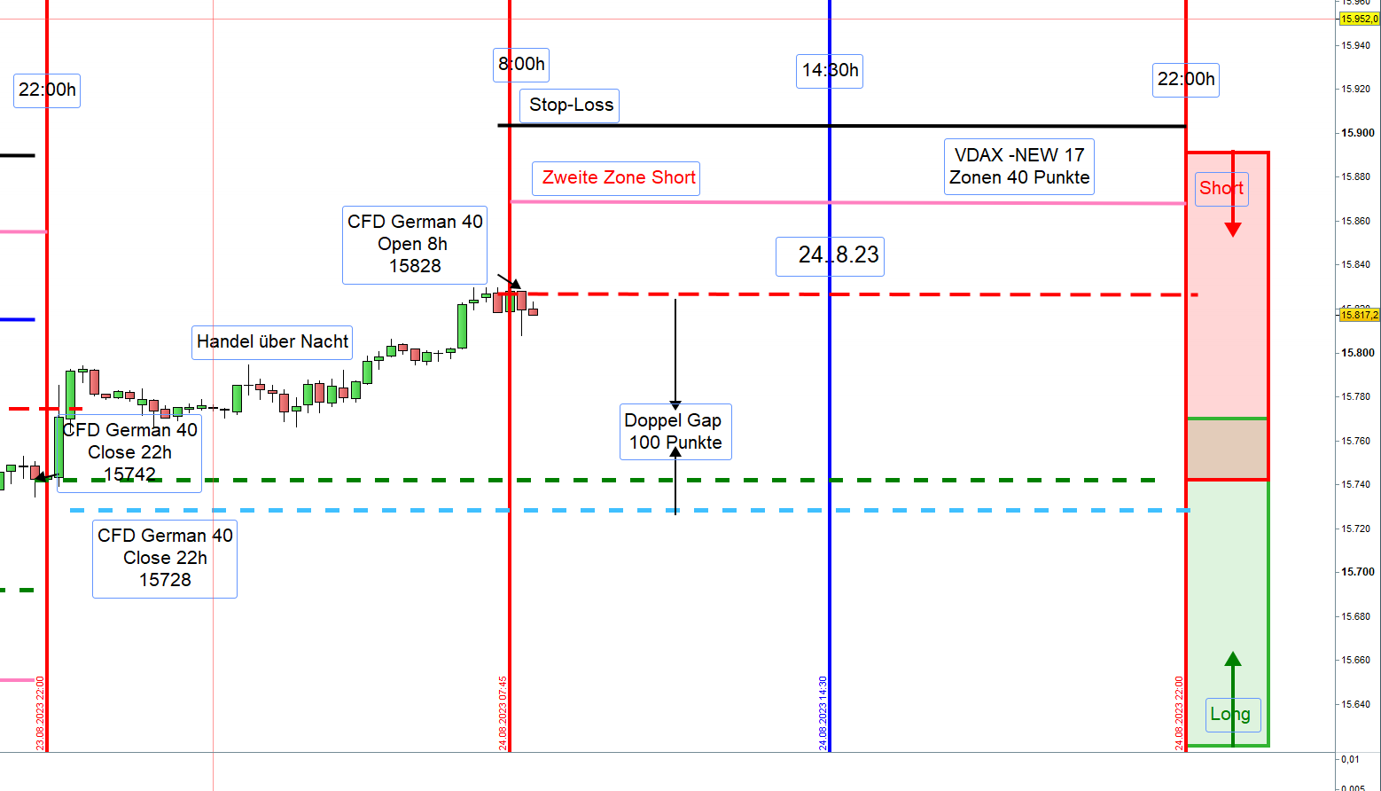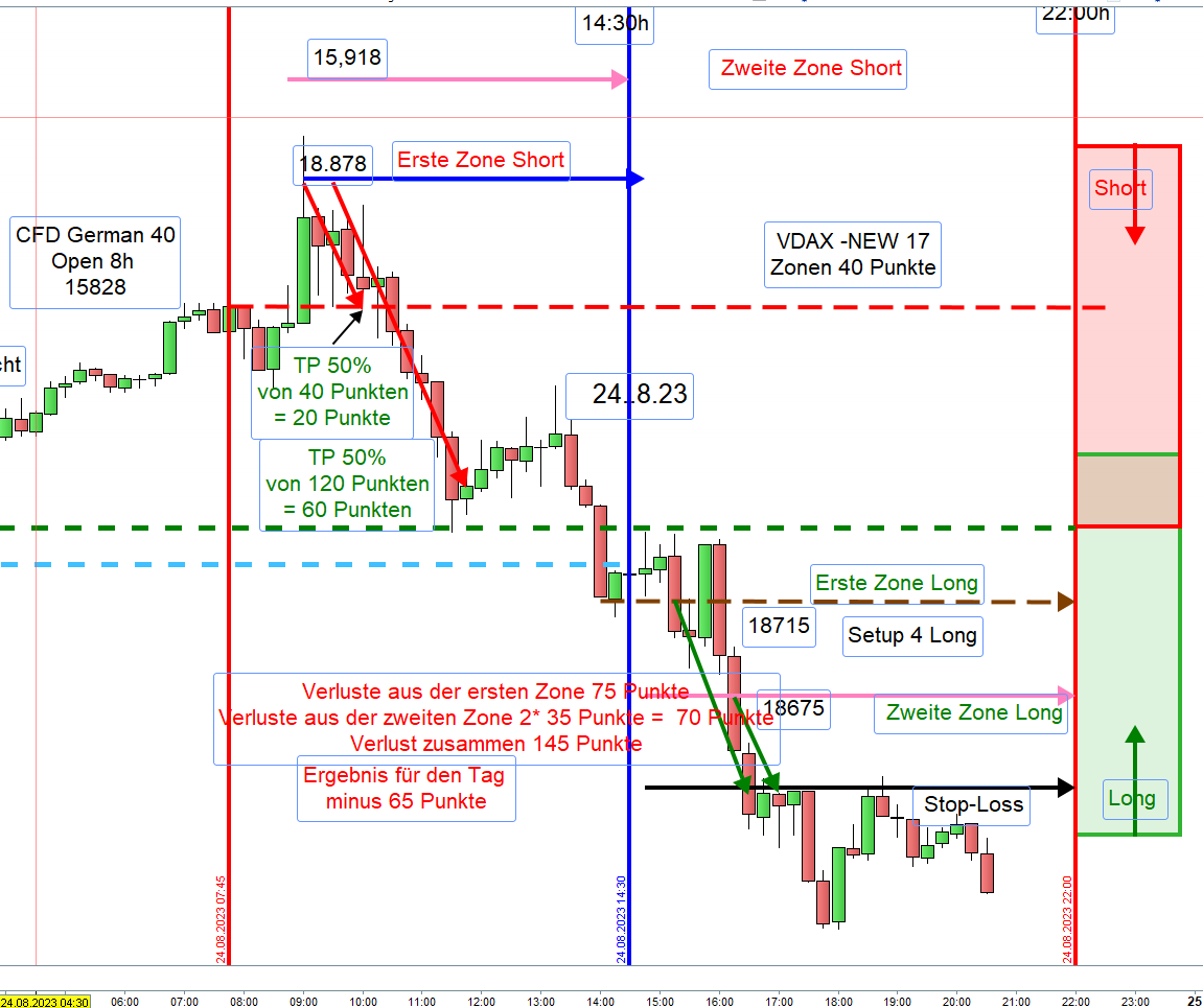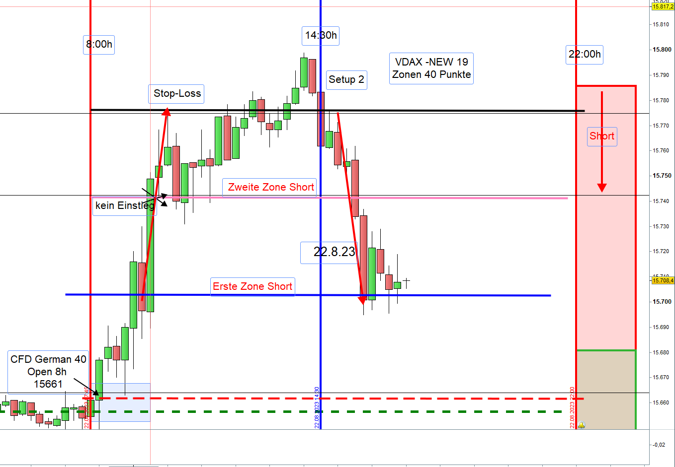 Wurde nur eine Position an der ersten Zone eröffnet und diese befindet sich unwesentlich um 14:30h noch im Verlust, dann bleibt diese offen, denn darüber befindet sich ja noch die zweite Zone mit einem hohen Gewinnpotenzial.