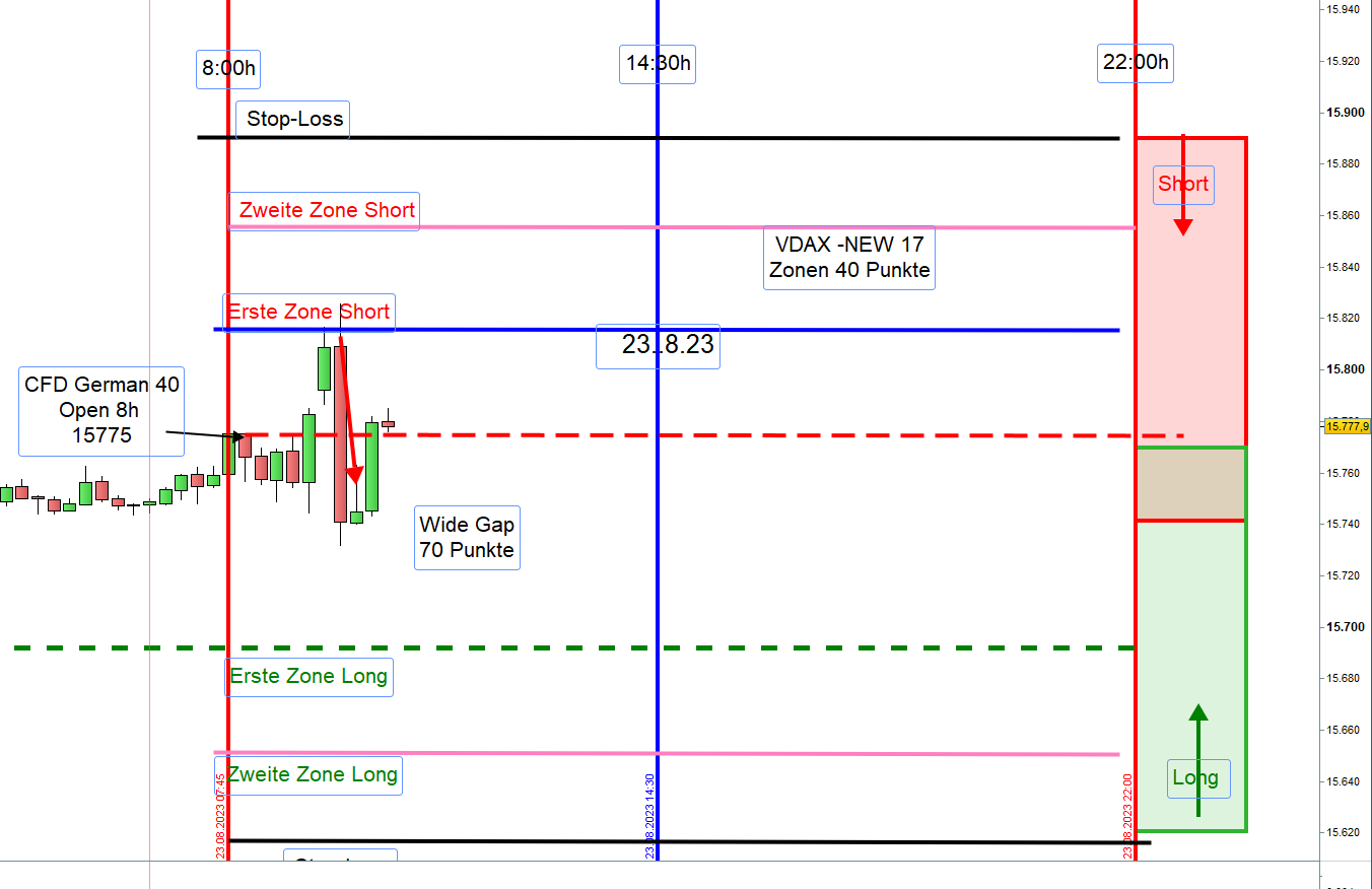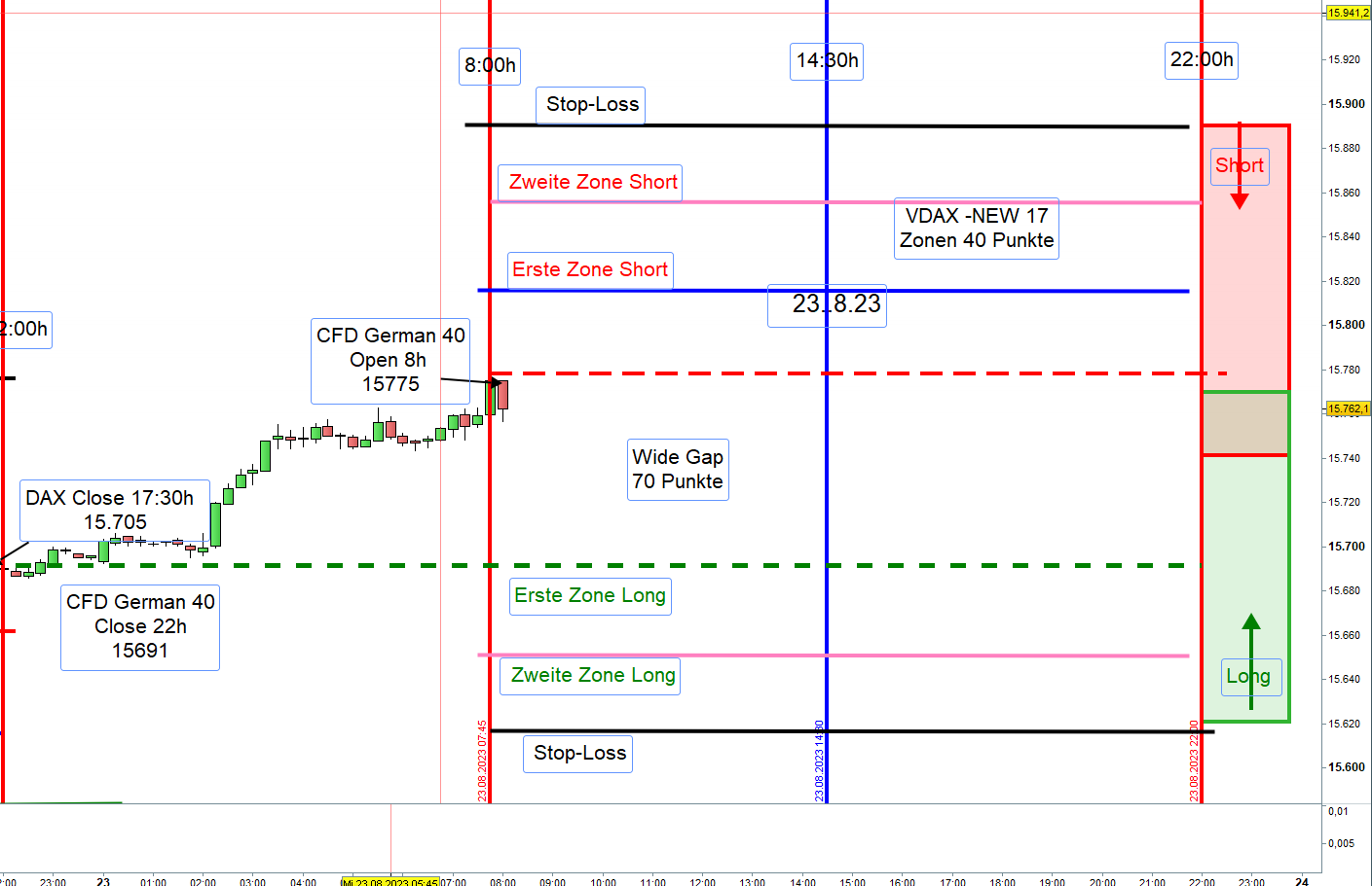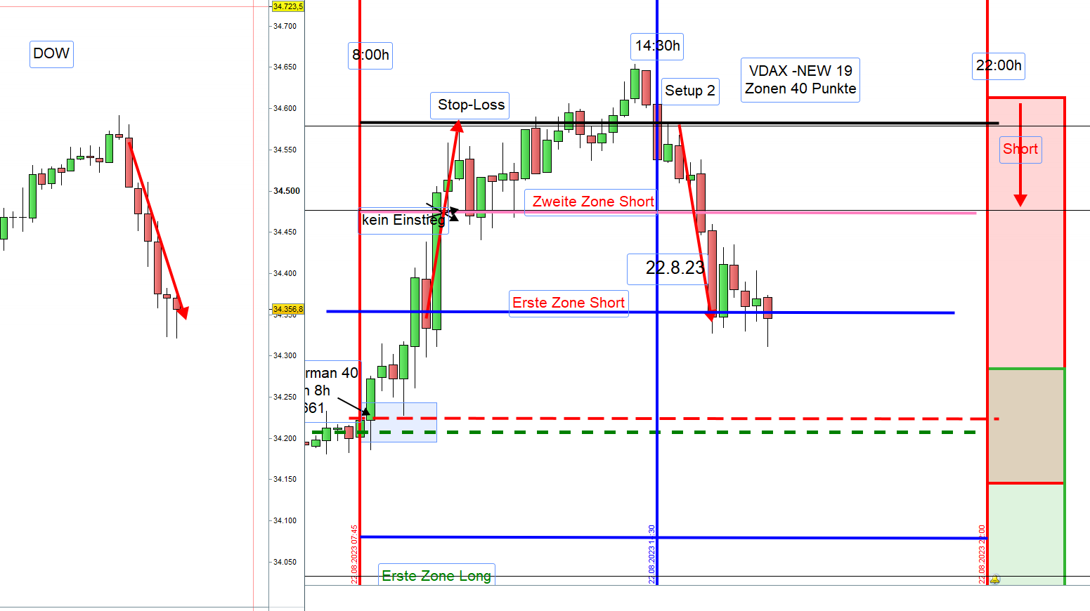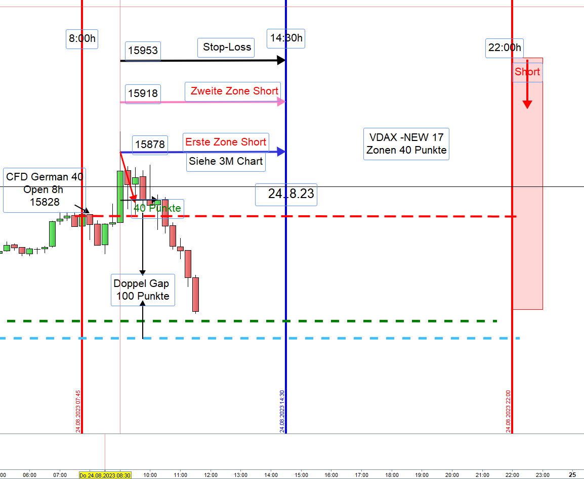 Wurde nur eine Position an der ersten Zone eröffnet und diese befindet sich unwesentlich um 14:30h noch im Verlust, dann bleibt diese offen, denn darüber befindet sich ja noch die zweite Zone mit einem hohen Gewinnpotenzial.