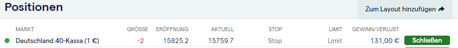 Der eingefügte Chart vom 1.8.22 befindet sich in der Tat um 14:30h einige Punkte im Verlust.