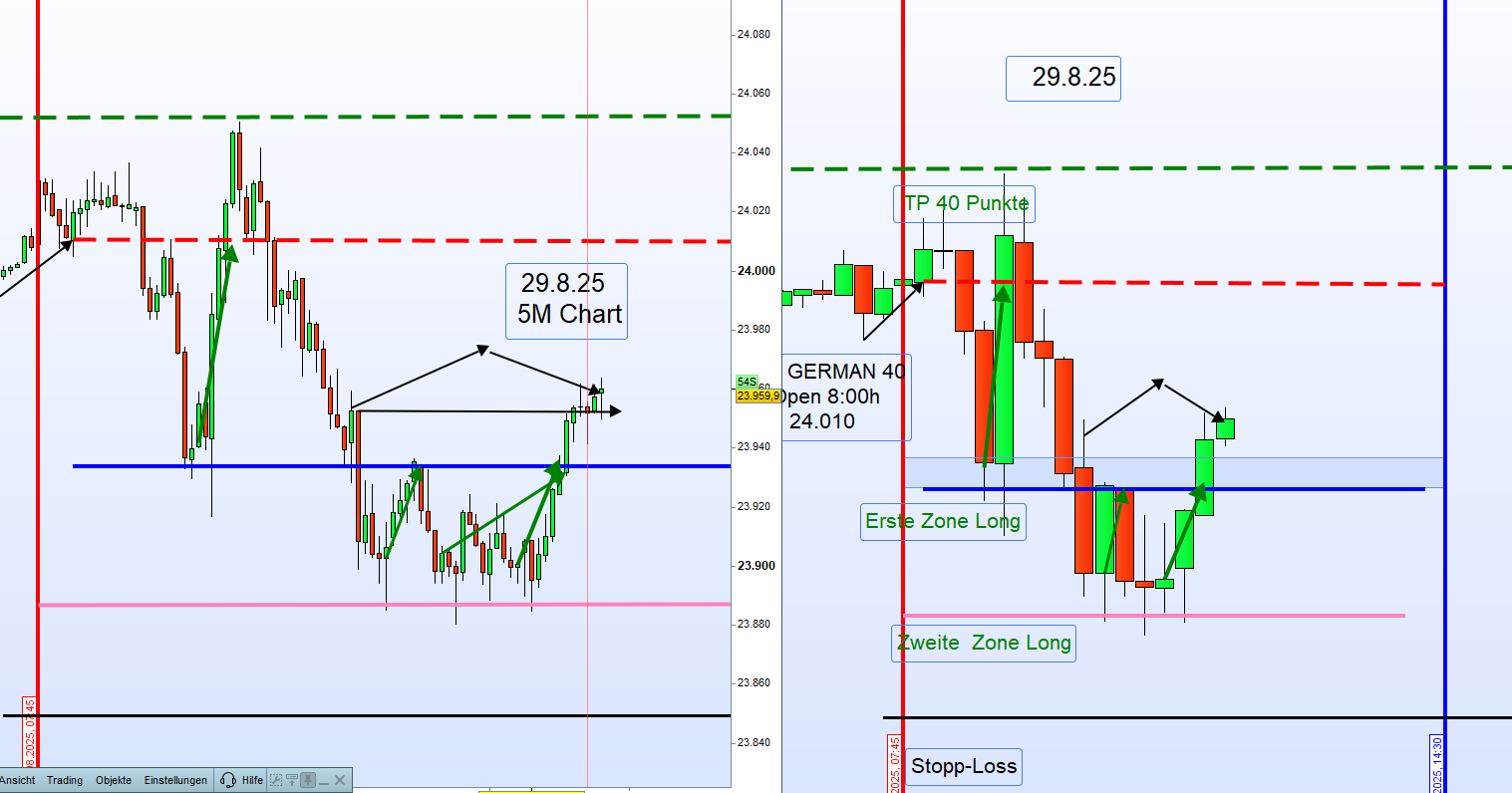 Tritt dieses Szenario auf, orientieren wir uns im Trade-Management an den 5-Minuten-Kerzen.