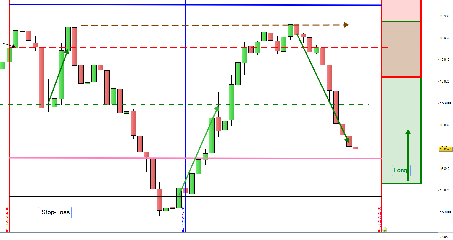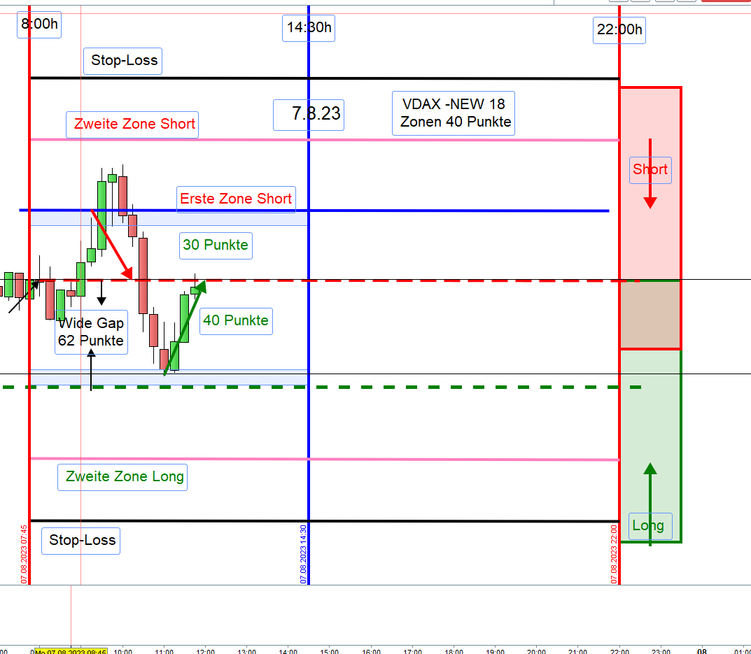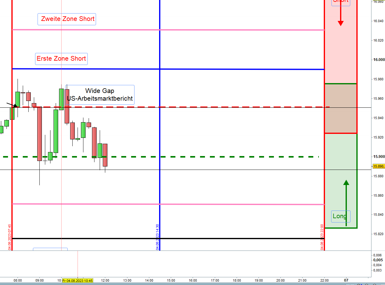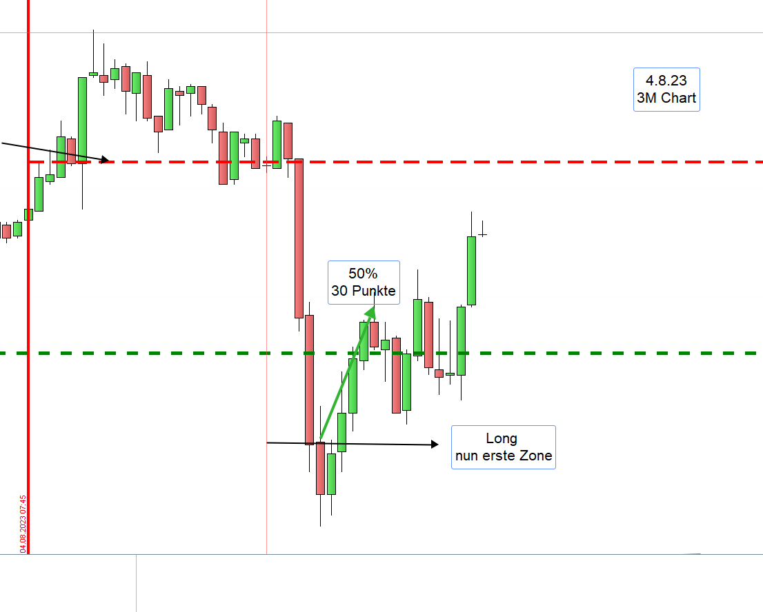 Die Kunst ist es auch bei einer Long Position bis 14:30 innerhalb der Range Short und Long zugehen