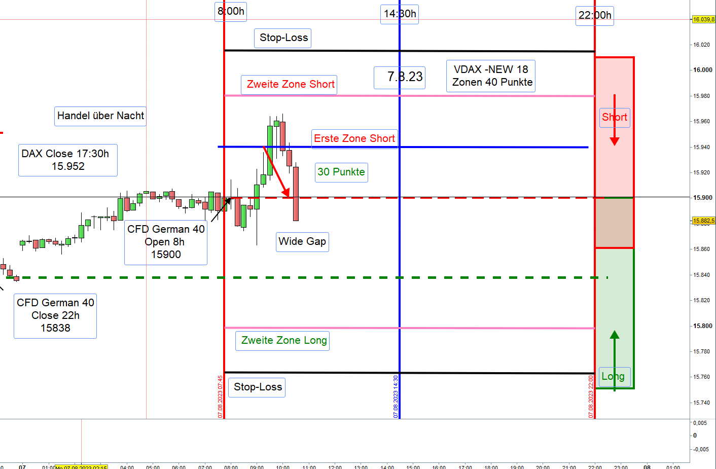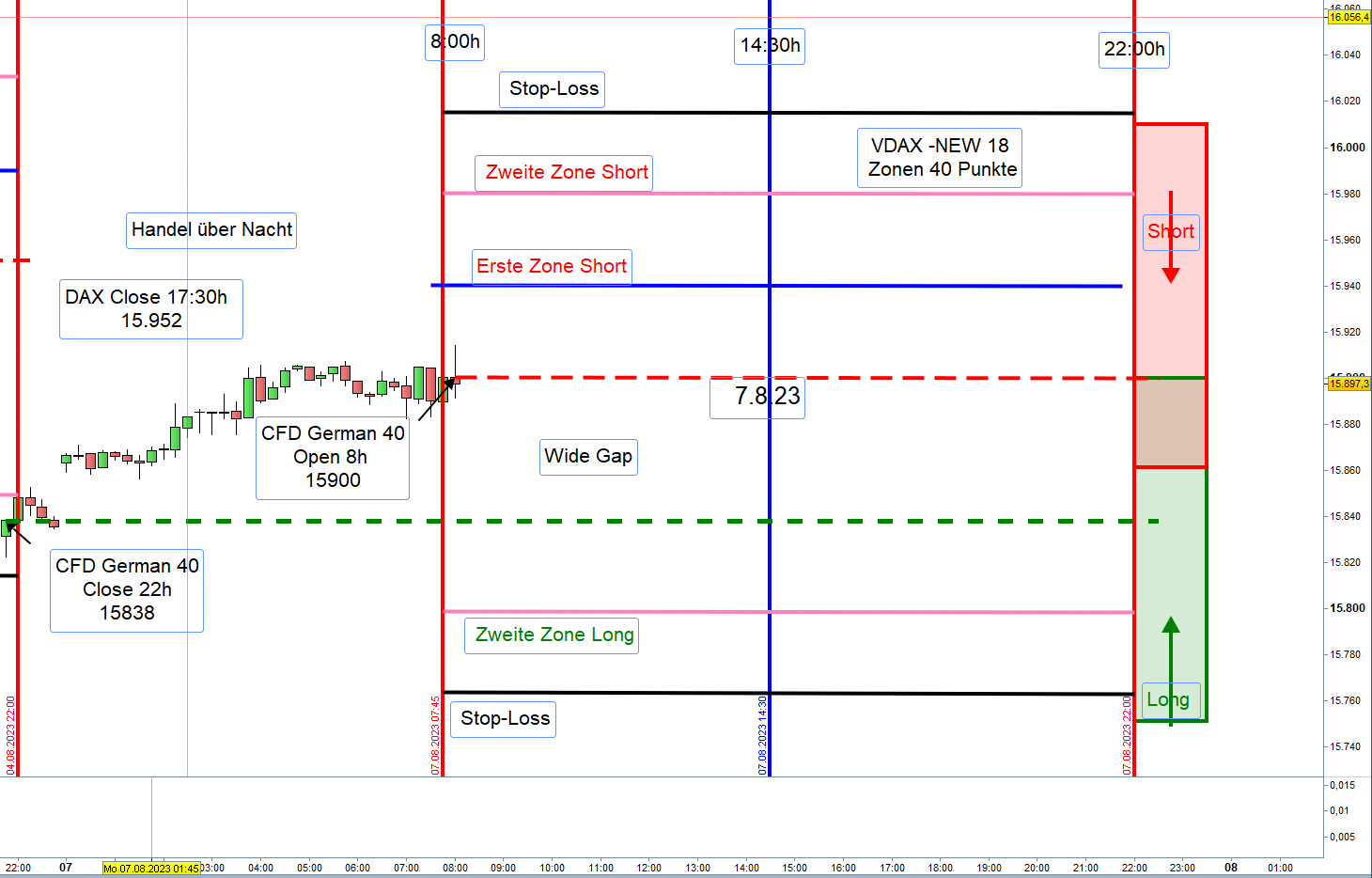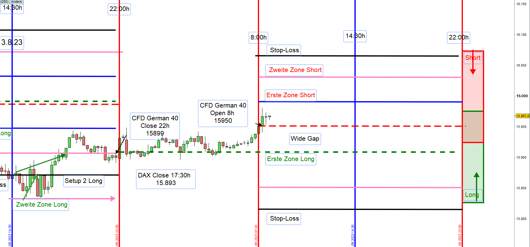 Die Kunst ist es auch bei einer Long Position bis 14:30 innerhalb der Range Short und Long zugehen