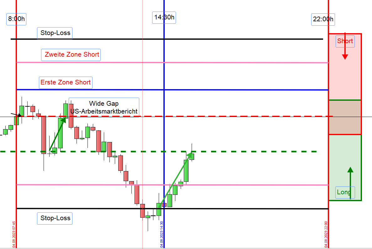 Sofern der Stopp Loss an einem US-Arbeitsmarktbericht ab 13:30h erfolgt und der Kurs stagniert, dann kann man getrost Long gehen. Dafür gibt es zwei Gründe: