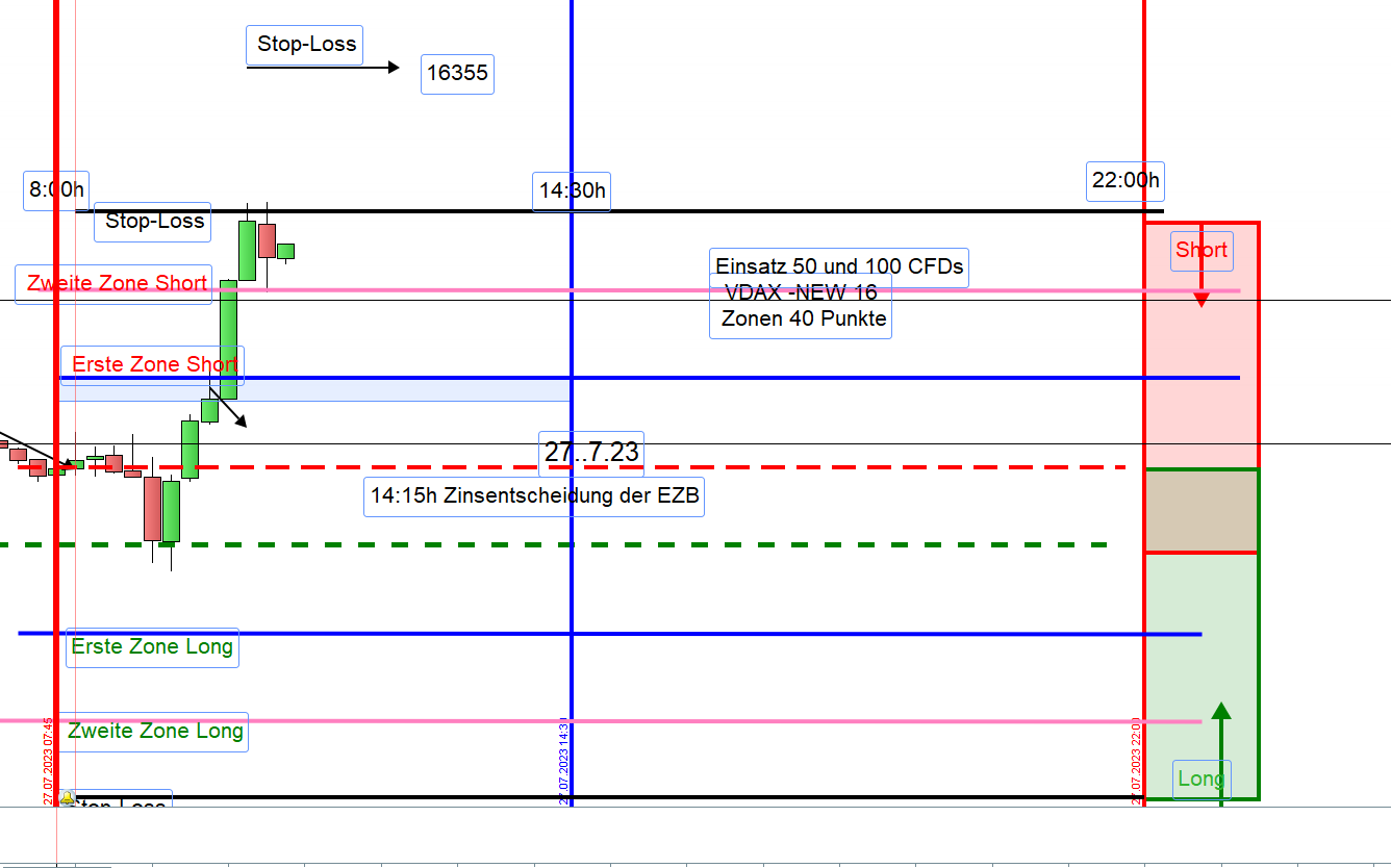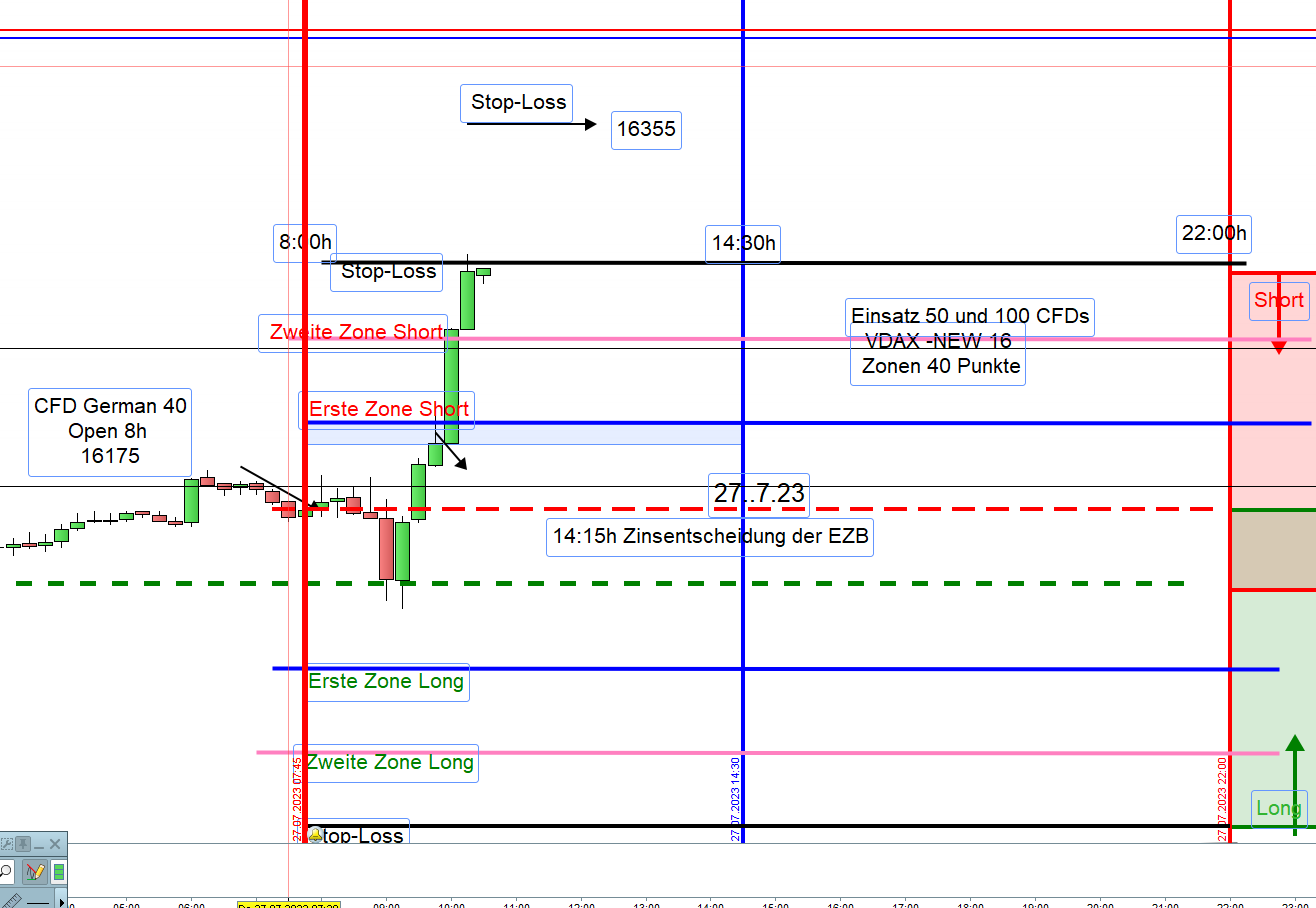 Auch wenn der Kurs noch unter die zweite Zone ( für mich) rutscht, dann werde ich dort keine neue Position Short eröffnen. Warum? Er könnte nun tendenziell bis 14:15 steigen. -