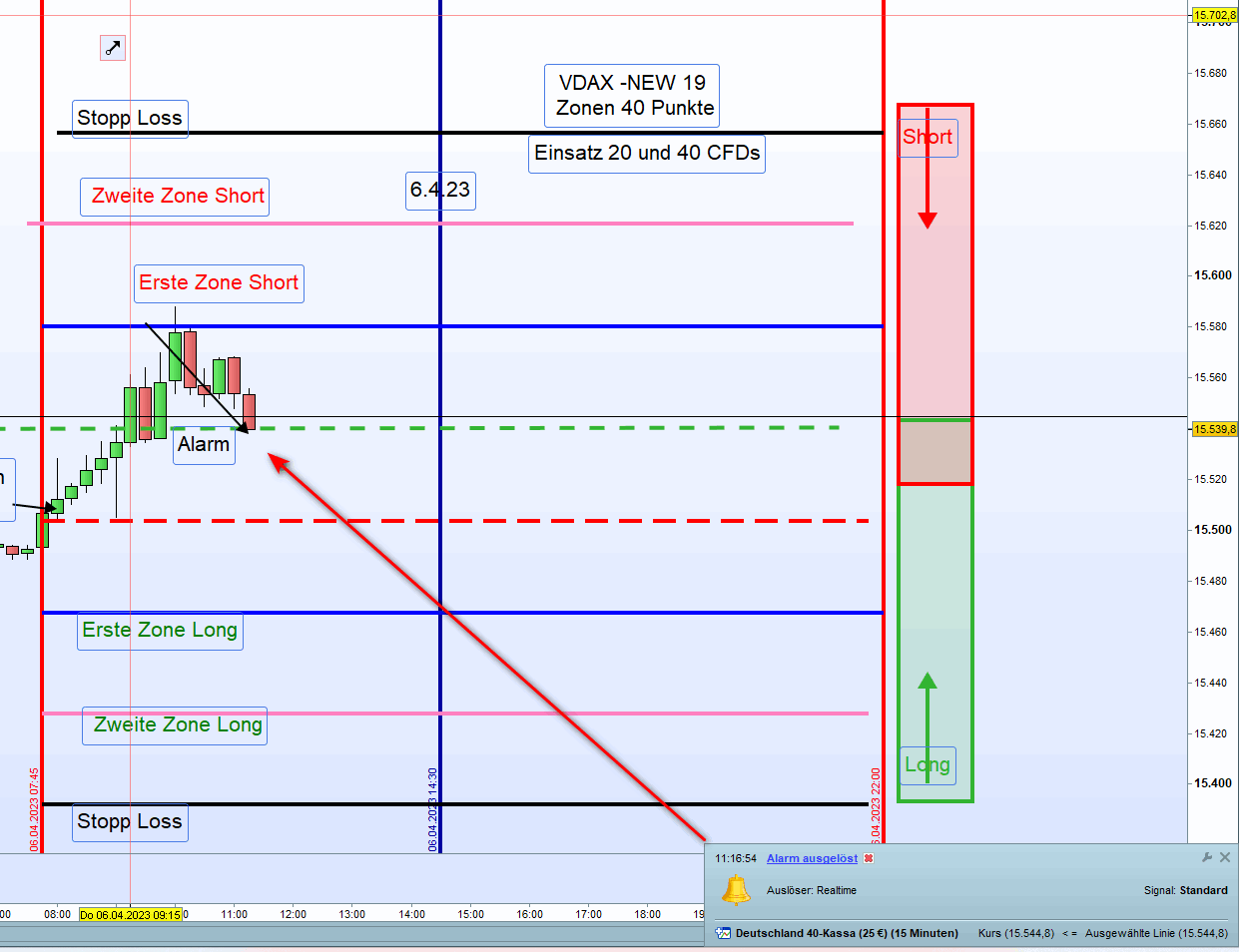 Das Hoch der 9h Kerze war mit 15.642.6 genau 4 Punkte unter dem Close um 22h von 15.646,6 und der Alarm also bei