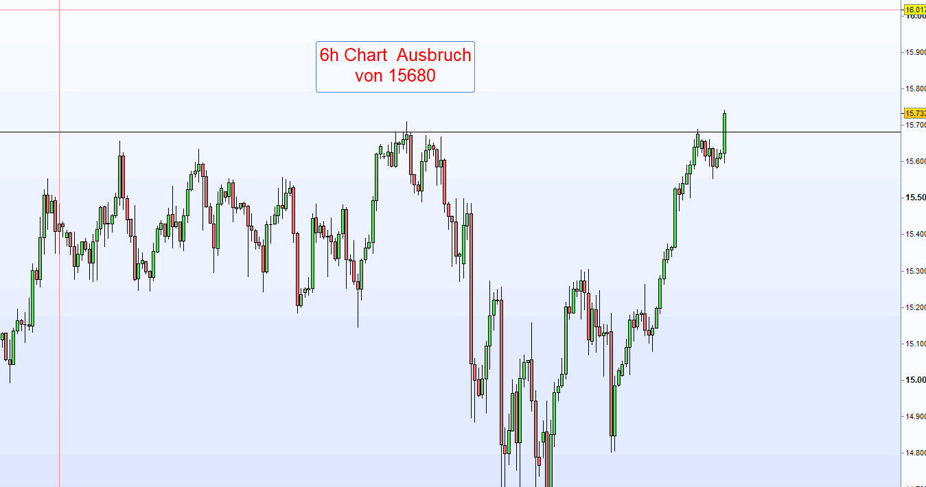 Das Hoch der 9h Kerze war mit 15.642.6 genau 4 Punkte unter dem Close um 22h von 15.646,6 und der Alarm also bei