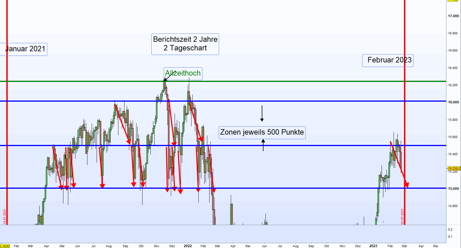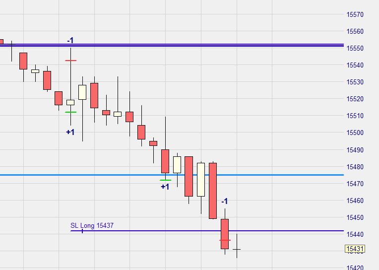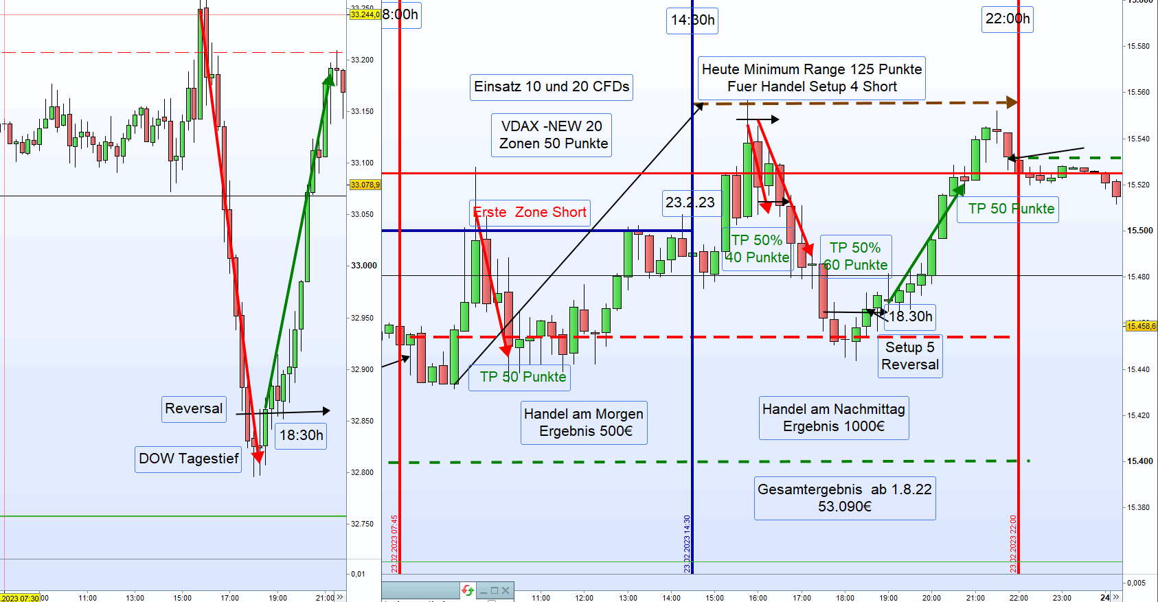 Wer nach dem ersten, erfolgreichen entry an Zone 1 einen 2. KAUF realisierte, sah sich mit einer Seitwärtsbewegung konfrontiert, die max. in den Bereich eines Buchgewinns von 15 Punkten führte.