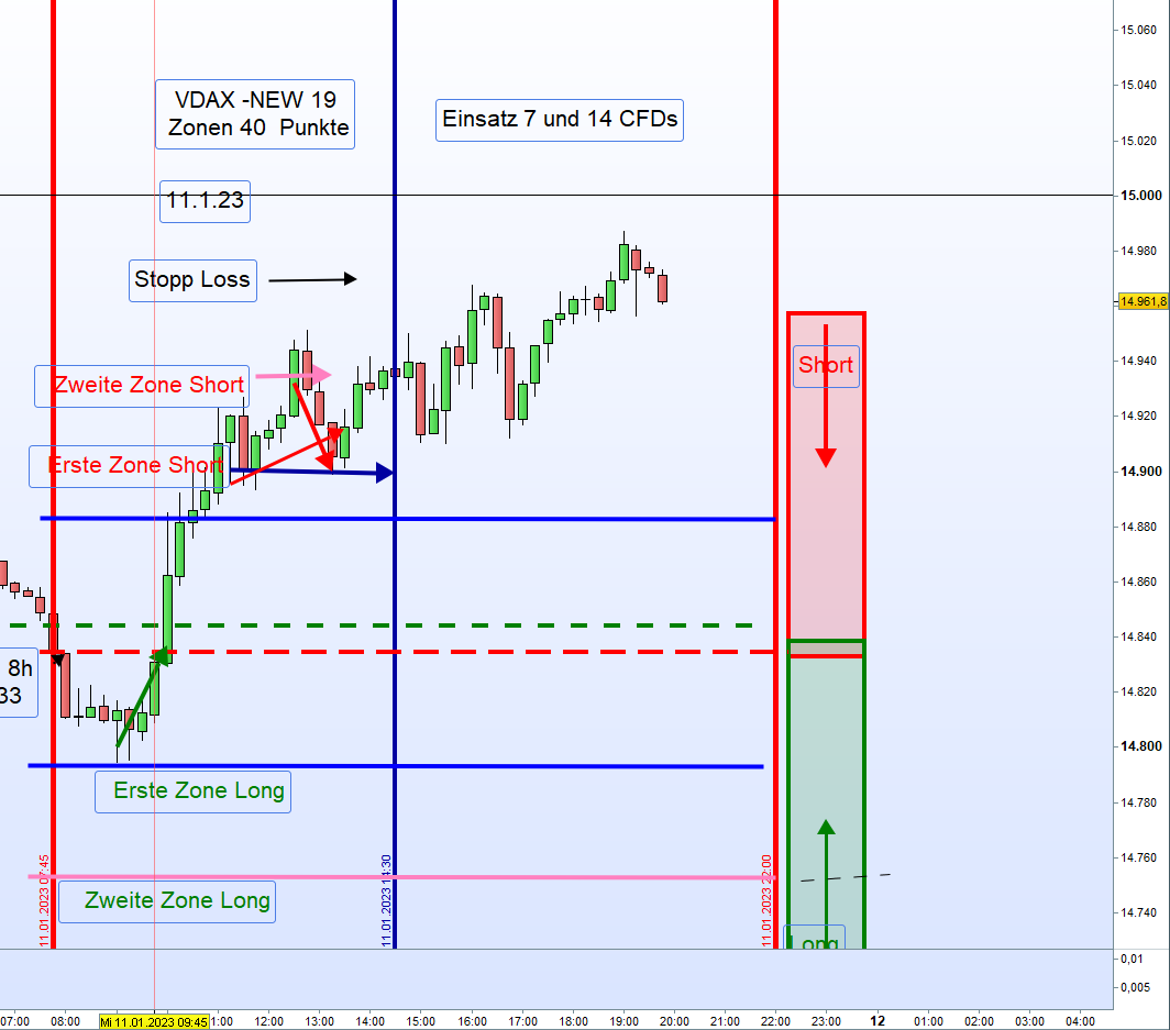 2. an der (regulären) ersten Zone Short - eng abgesichert nach 15 Punkten im Gewinn