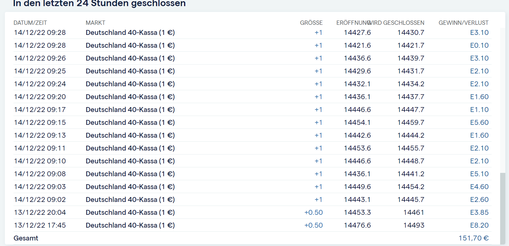 Zum Beispiel, am letzten EZB-Termin im Oktober ist der Kurs vom EK um 8h (rot) auch erst um maximal 123 P gefallen bis 13:00h, um dann anschließend bis 16:00h bis maximal 77 P über den EK wieder anzusteigen.