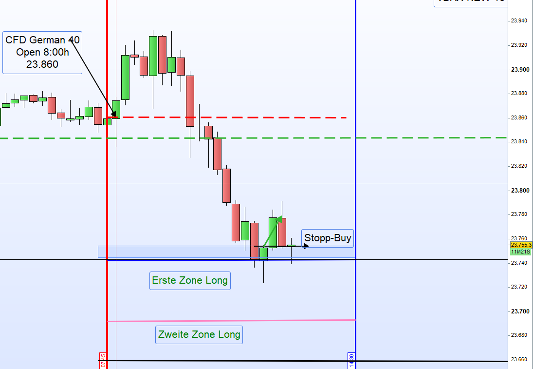 BeschreibungBerechnungKurs1. Long-Zone23.159 − 10023.0592. Long-Zone23.059 − 5023.009Long Stop-Loss23.009 − 3522.974