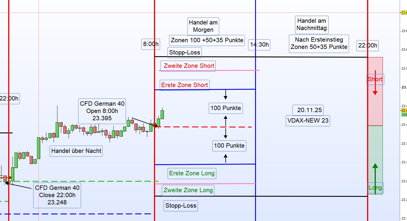 Die Eröffnung am 20.11.2025 um 8:00 Uhr erfolgte bei 23.395 Punkten.