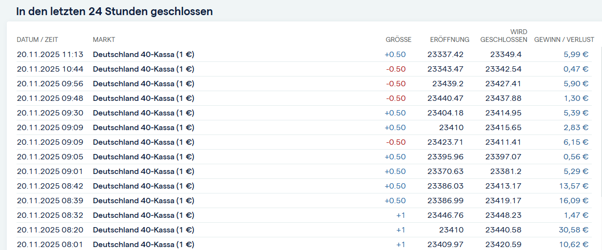 Handelstag 20.11.2025 – German 40 / DAXMarktüberblick: