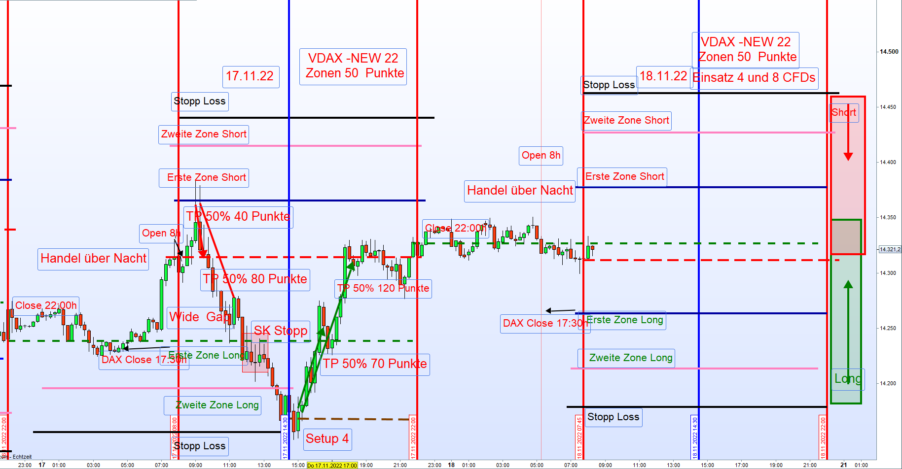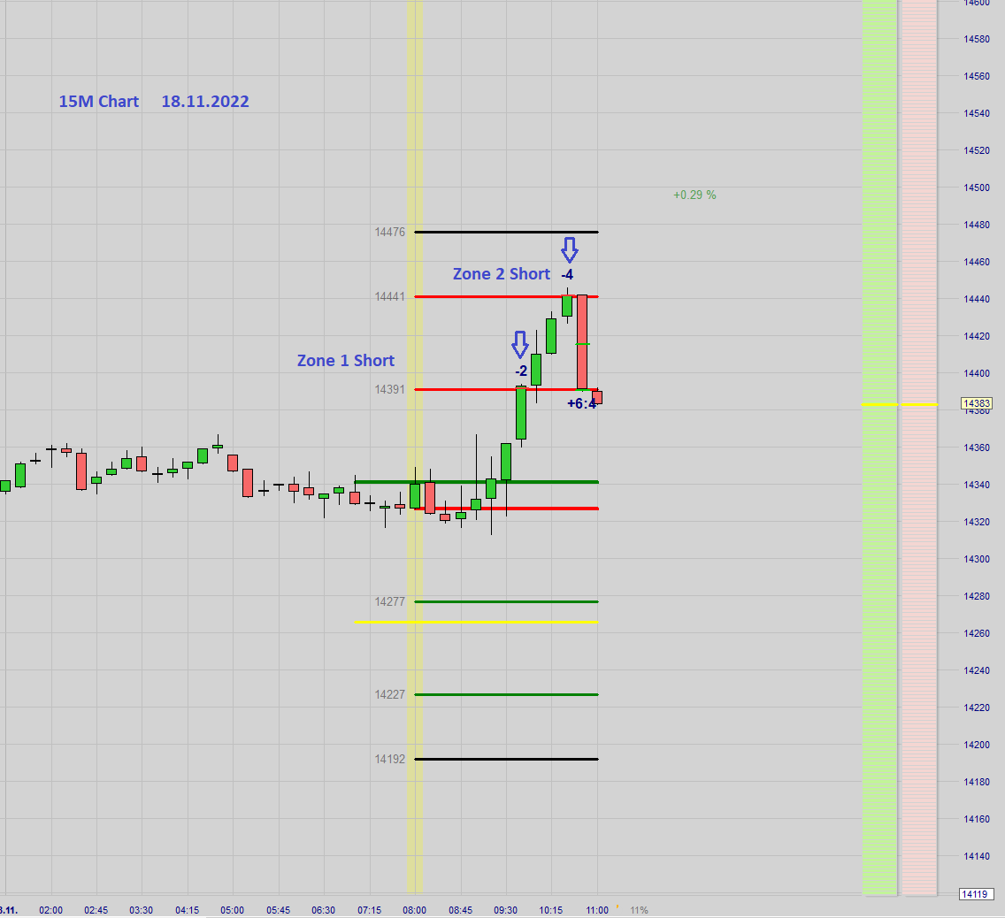 , ein Einstieg an Zone 1 Short und an Zone 2 Short.