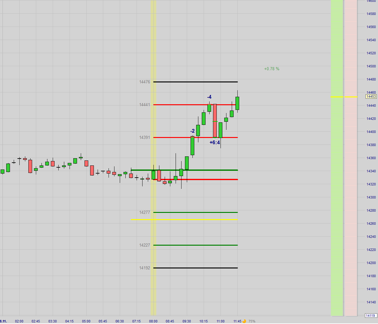 Ab 12h bis zur Eröffnung der US Börse eine Umkehr unwahrscheinlich. So bildet sich der Setup 4.