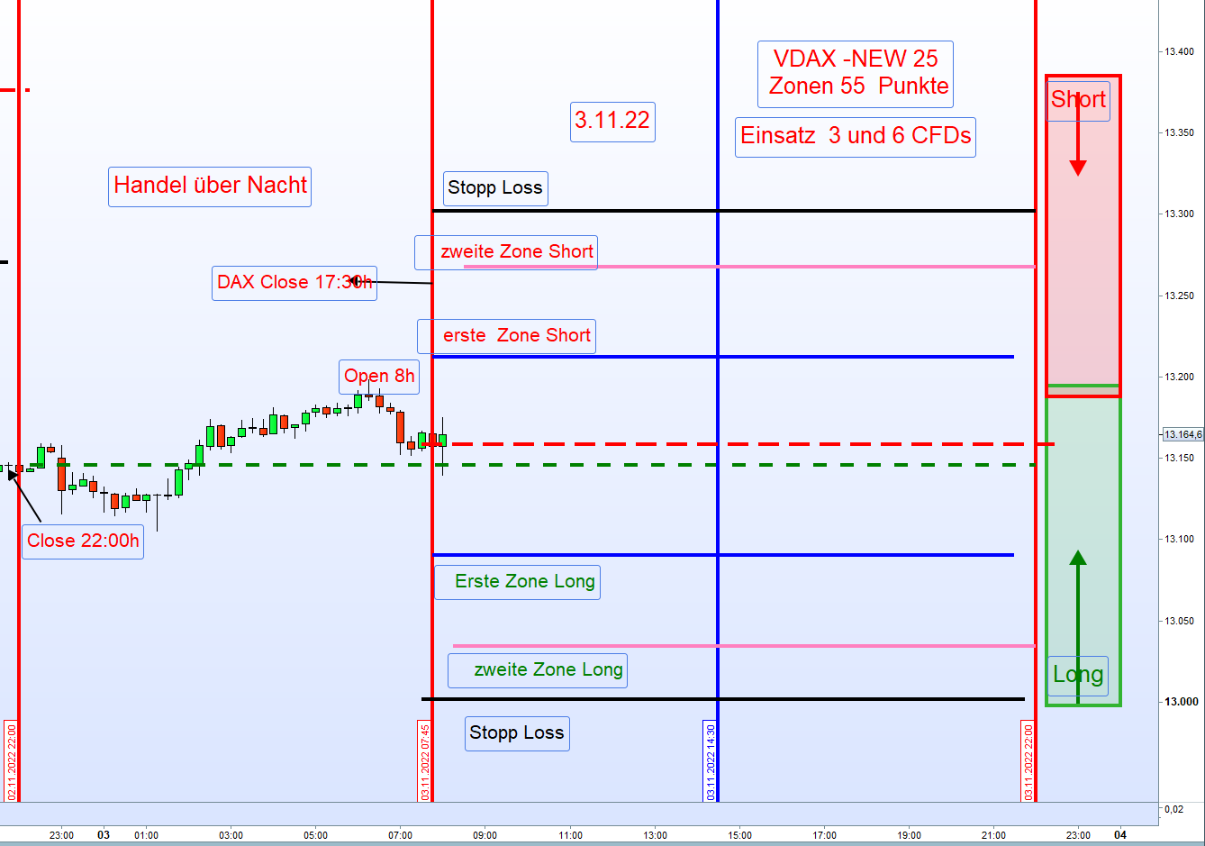 Die Futures DAX und DOW waren zudem solide im Plus um 8h, d.h. um die ca. +0,5 % und auch vorbörslich eine Aufwärtstendenz gegeben, erste Anzeichen für einen Long-Einstieg. Und der Kurs lag über den XETRA.