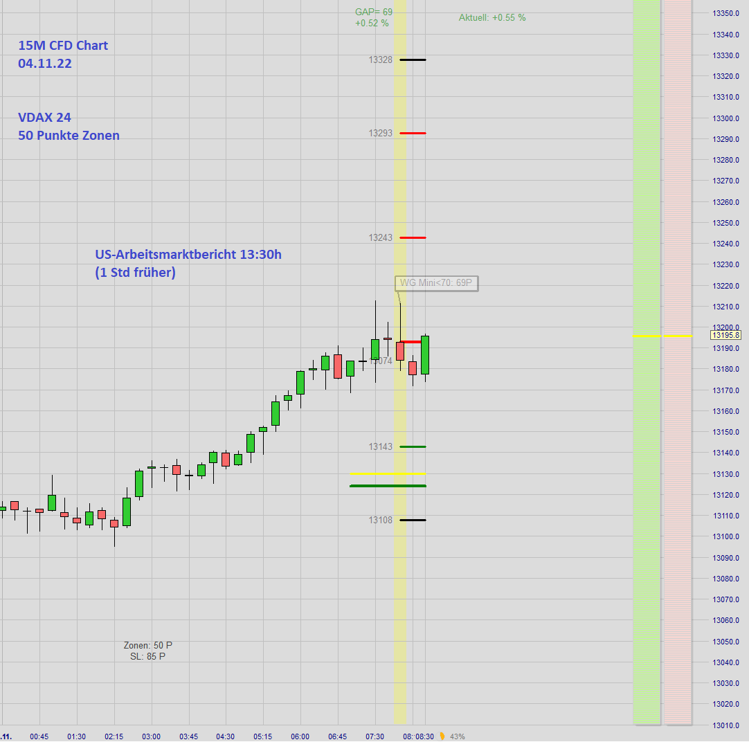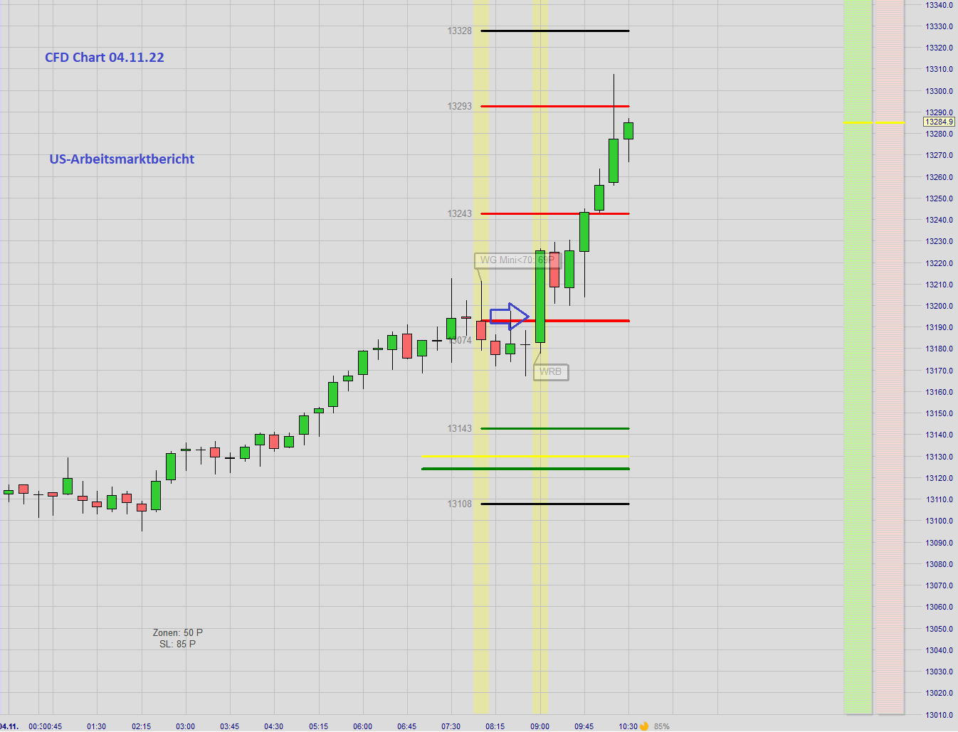 Am "Arbeitsmarkbericht" am 1. Freitag im Monat ist tendenziell eine Long-Tendenz gegeben und laut Regelwerk waren die Voraussetzungen für einen direkten Einstieg ab 8h gegeben.
