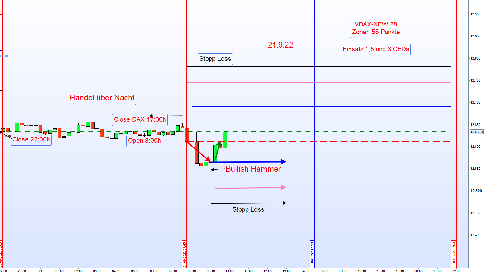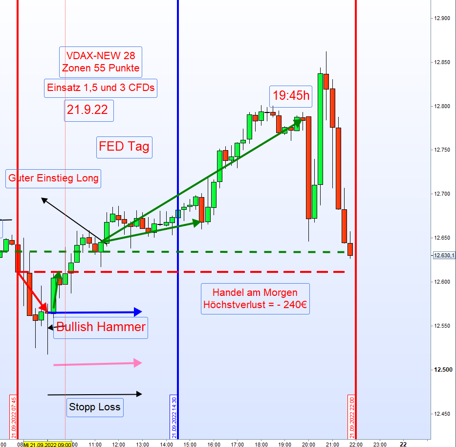 Ich werde künftig aber eher um 9h einsteigen und eine UKK (Umkehrkerze), z.B. eine bullische Hammer-Kerze abwarten (wie im Chart zu sehen), vor 8h ist ist es recht unsicher