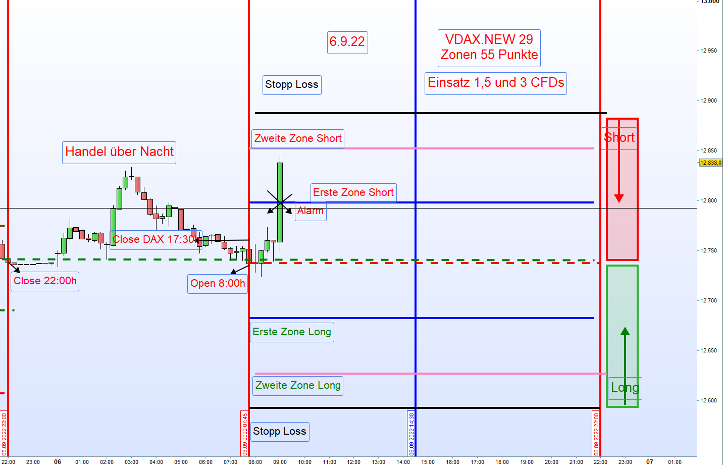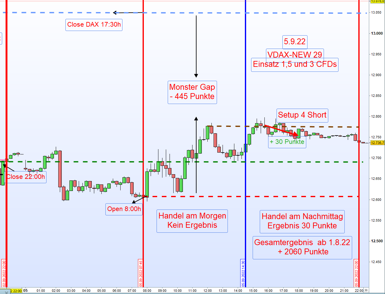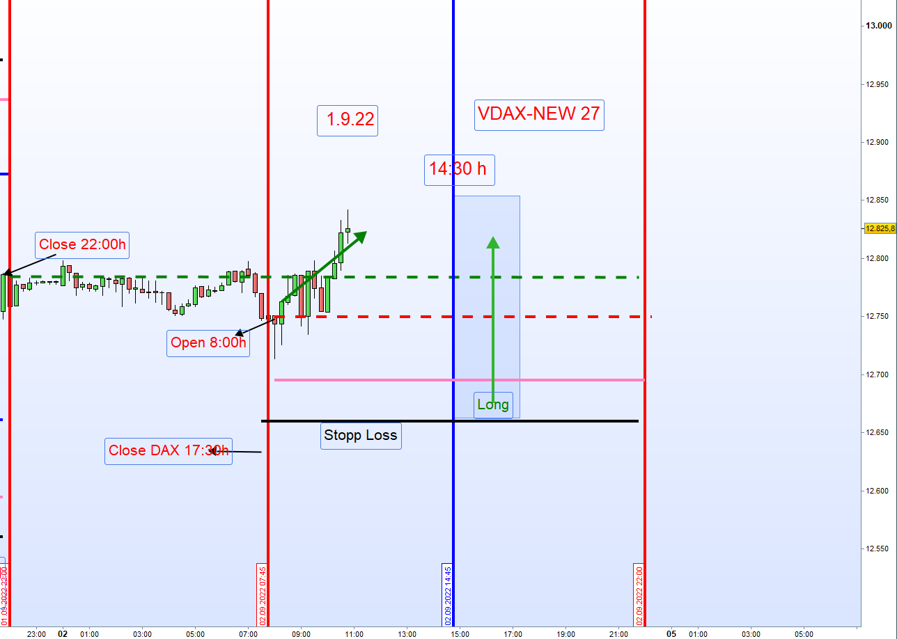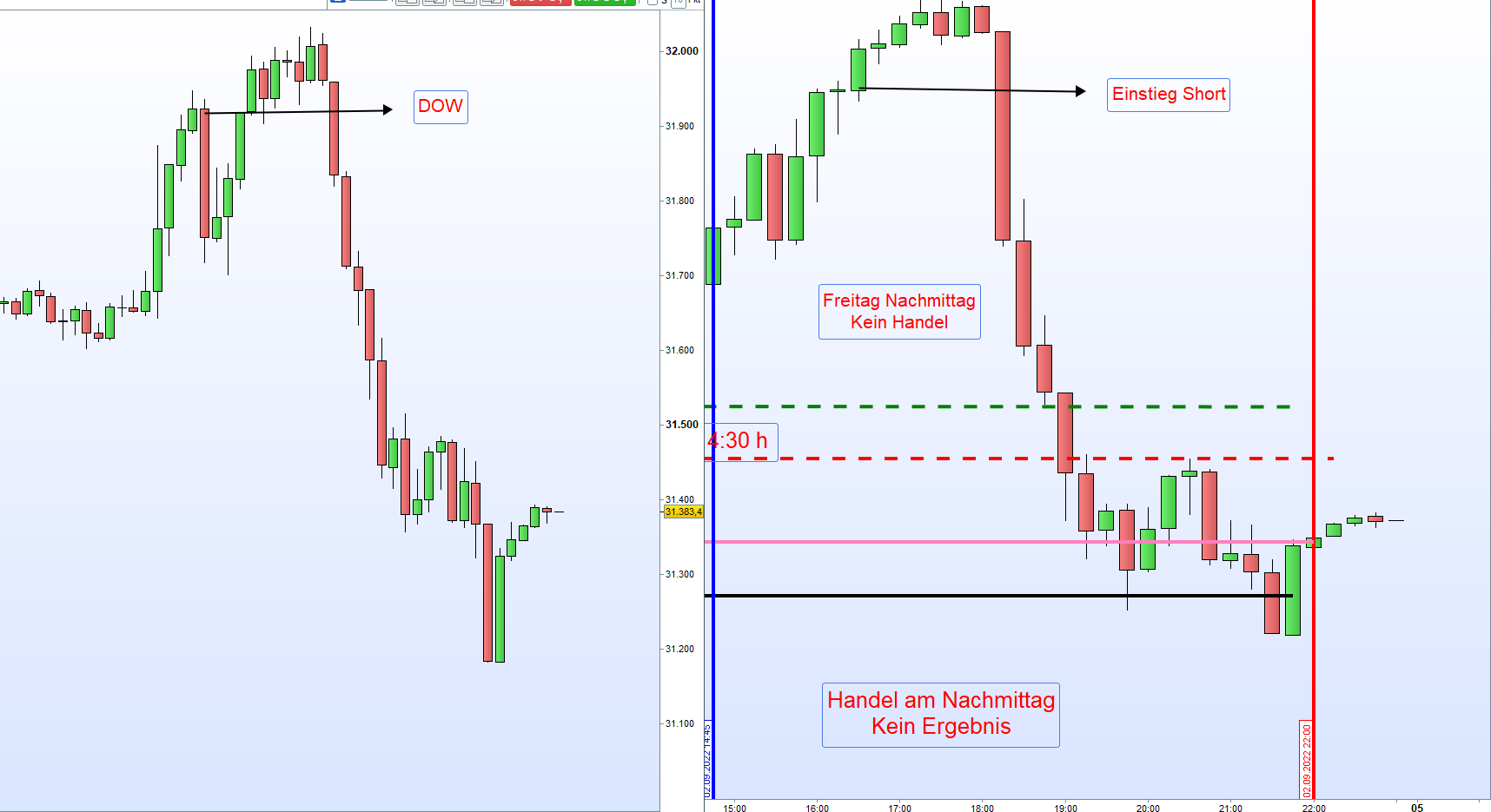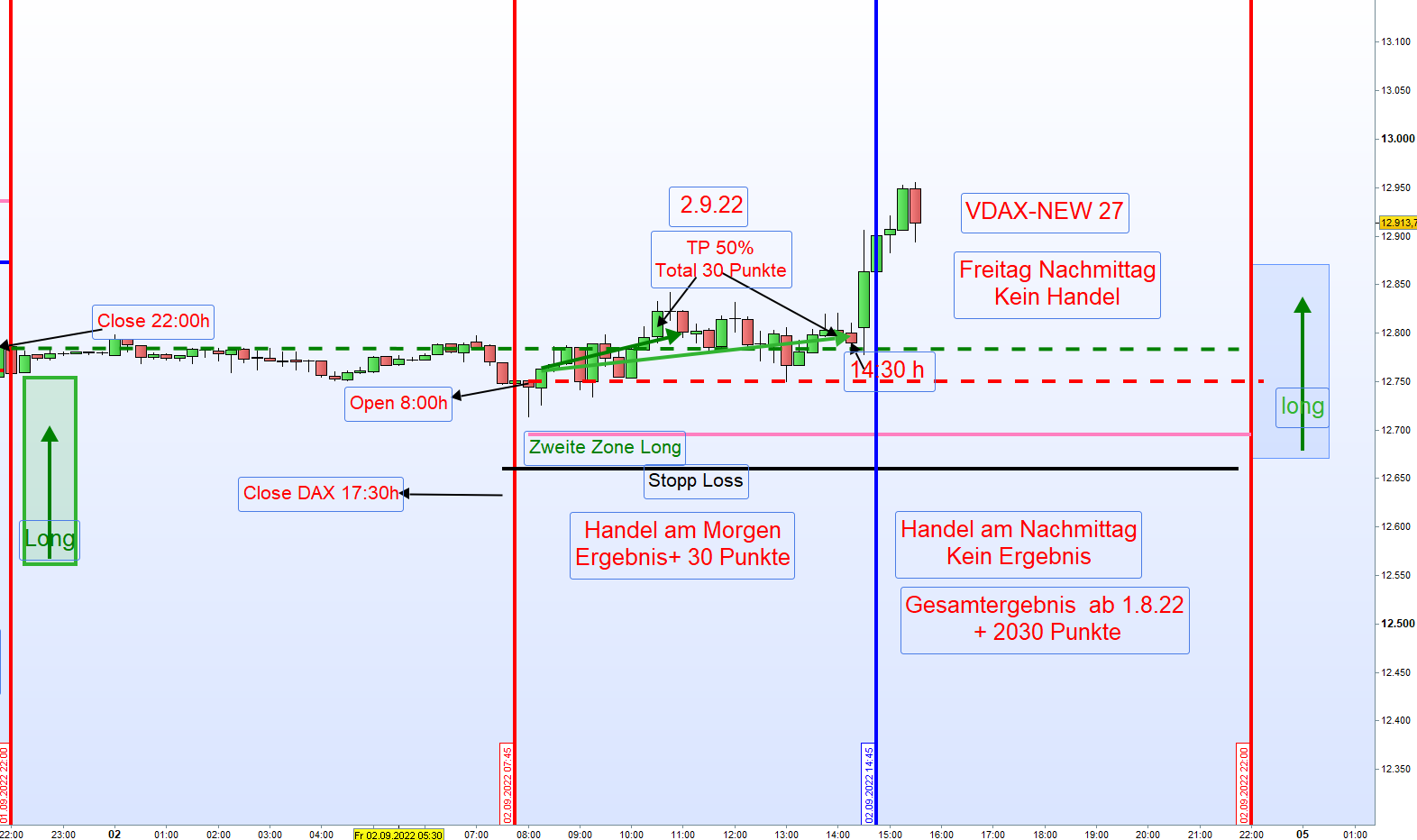 Der Kurs ist fast genau bis zum XETRA DAX Close Vortag (wie Unterstützung), hier hätte man nochmal Long einsteigen können für 20 bis 25 oder mehr Punkte. -