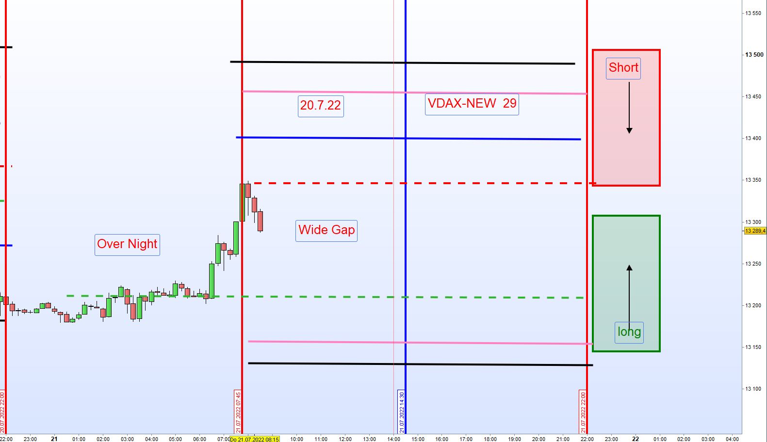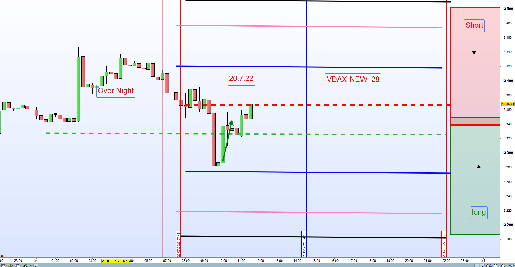Handel in Richtung der Zonen Long/Short. Eine Kursbewegung in Richtung der Zonen ist jeden Tag gegeben. Unter gewissen charttechnischen Voraussetzungen, Futures DOW/FDAX sollten 0,5% im Plus oder Minus sein,.....