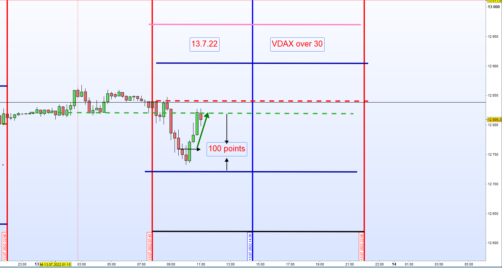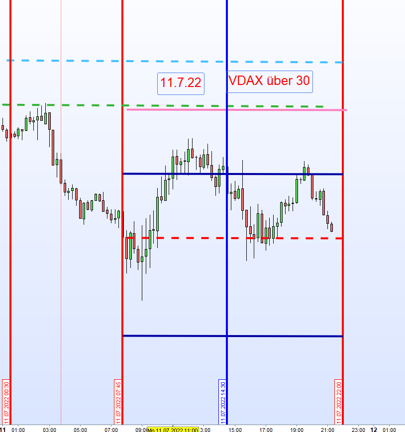 bzw. vom 11.07., vom Montag: "Notiert der VDAX über 30 wird eine Doppel Gap nicht gehandelt, jedoch erfolgt der Zonenhandel mit Einteilung als Referenz der Eröffnungskurs um 8:00h." -