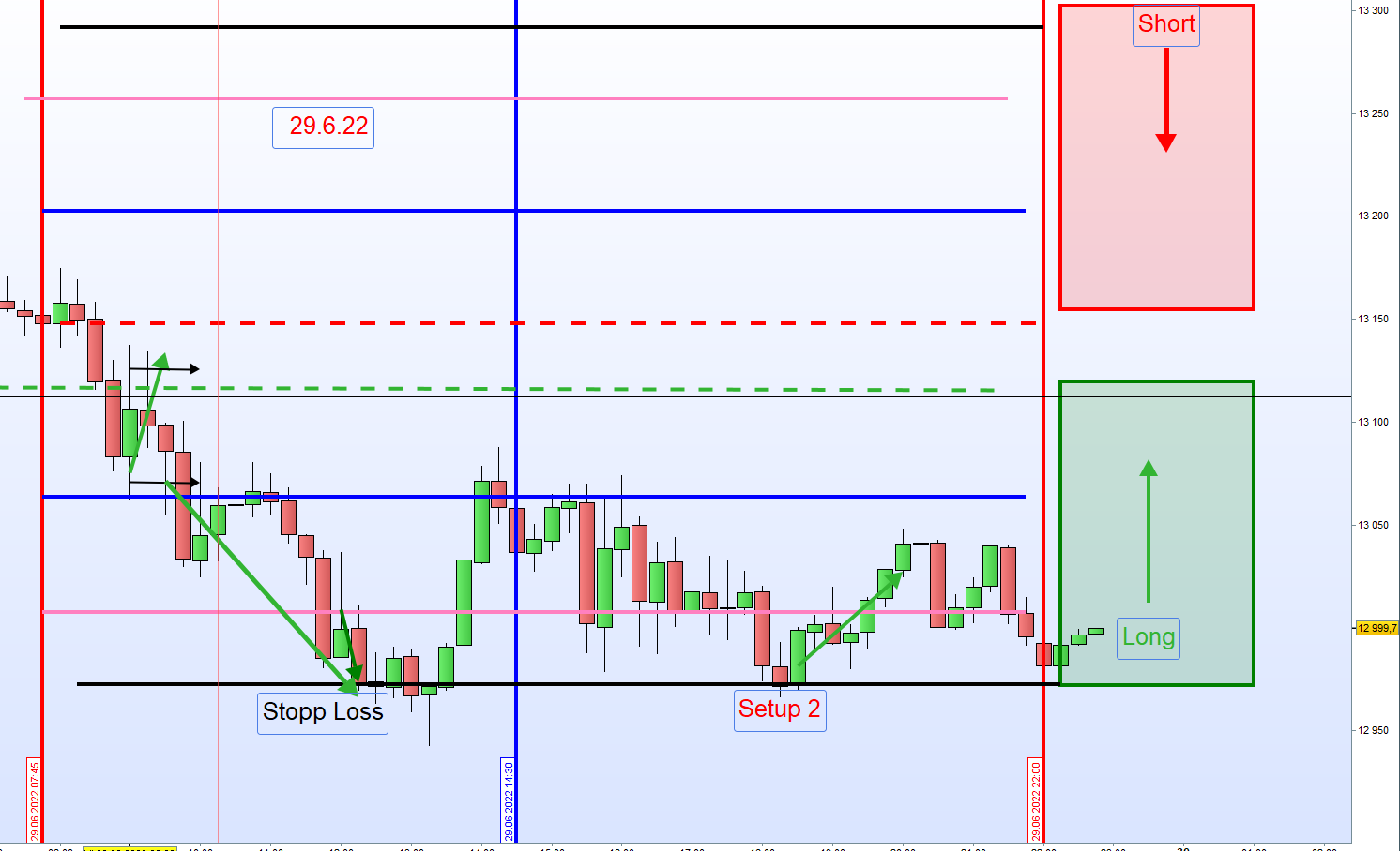 , ich weiß, nicht ganz korrekt, ich hatte auch gesehen, das Setup 3 nahe dem aktuellen Tageshoch war und daraufhin eher kein Setup 3 gehandelt wird.