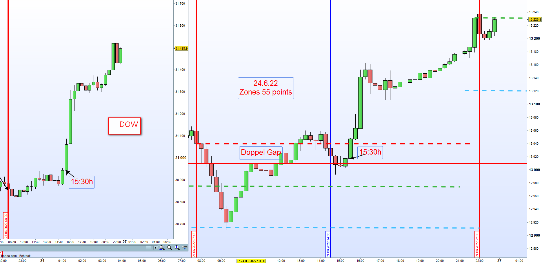 Mir ist aufgefallen, wenn man später einsteigt nach der neuen Regel "Kein Einstieg bis 9:00h" bei einer Doppel Gap und gerade weil auch die Futures um 8:00h gut im Plus waren.