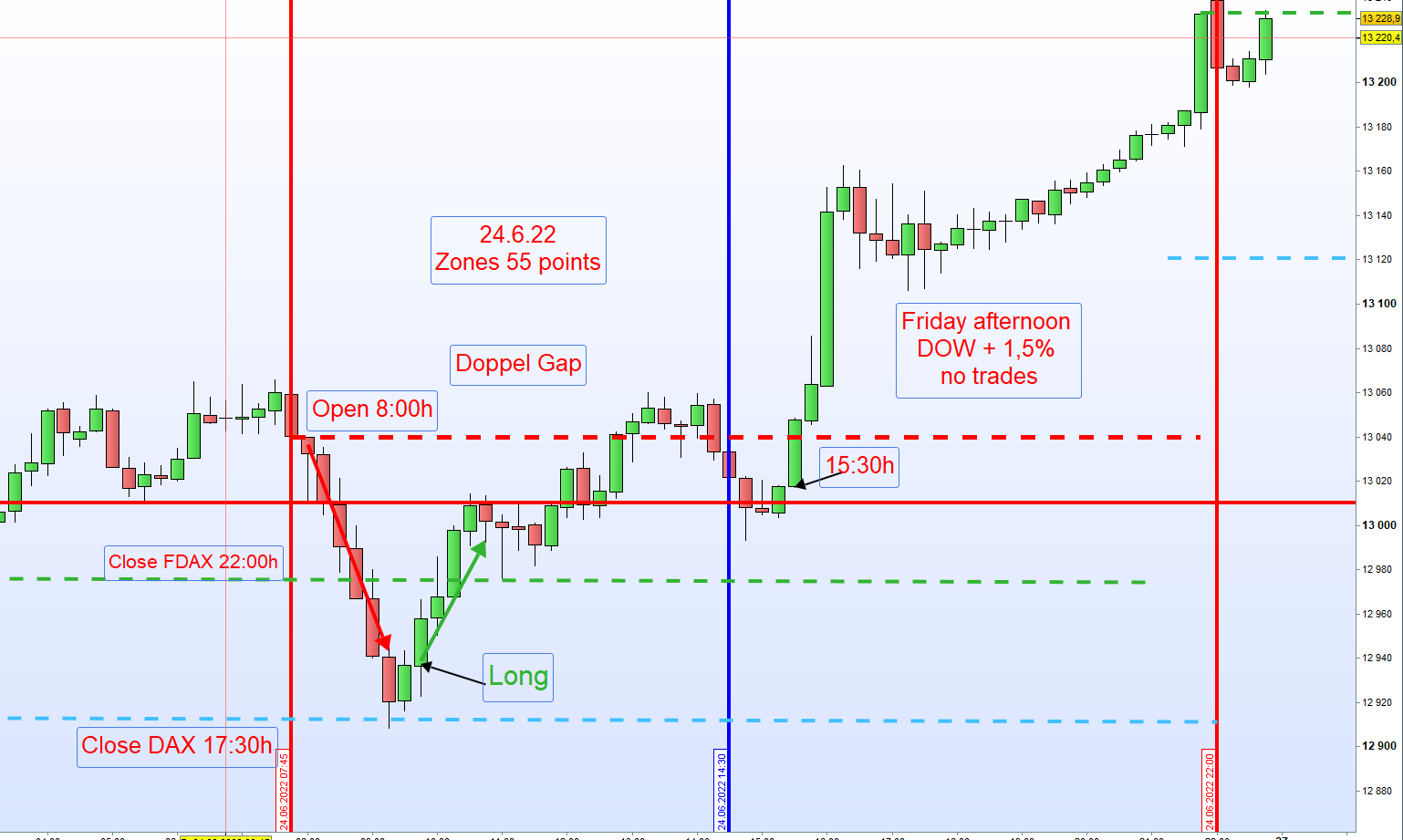 "Notiert der VDAX über 30 wird eine Doppel Gap nicht gehandelt und die erste Zone Long befindet sich 130 Punkte (nach aktueller Regel 100P) unter dem Eröffnungskurs um 8:00h.