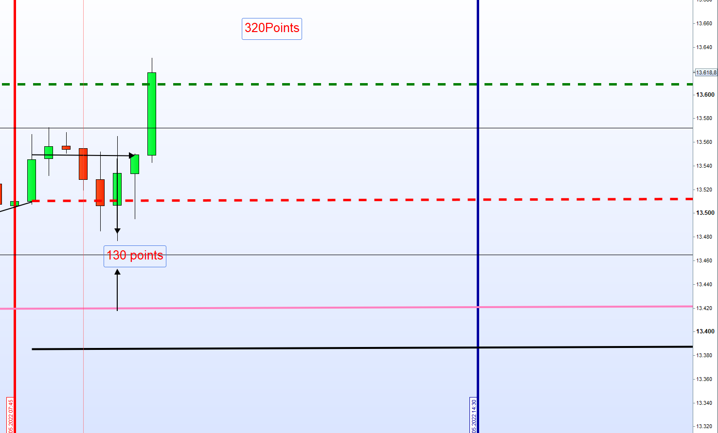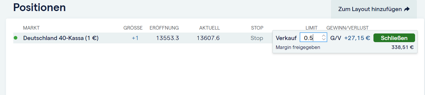 Auch die Eröffnung der zweiten Position um 13:00h war folgerichtig. Diese exakten Zeitangaben sind Orientierungen und kein Gesetz.