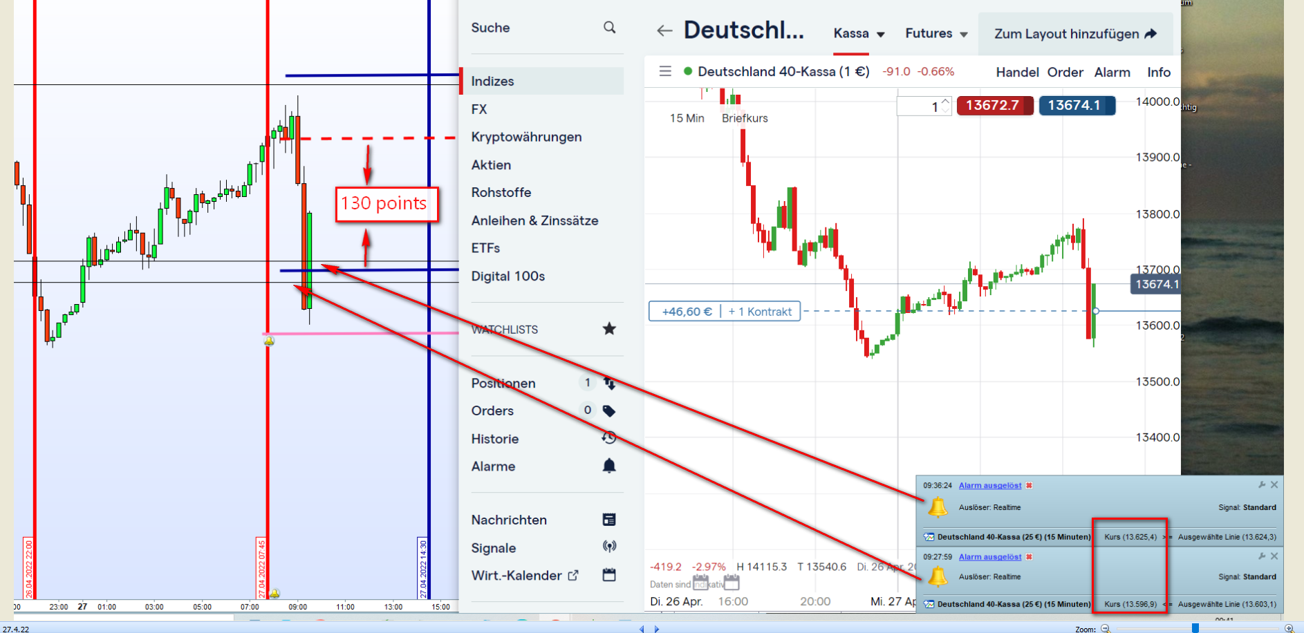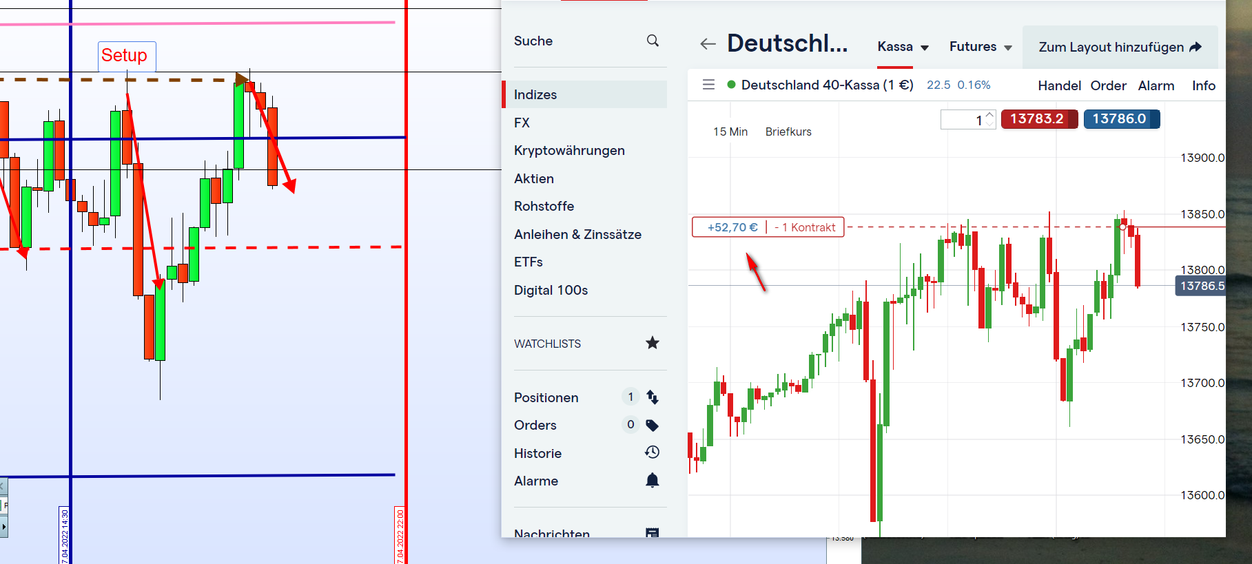 Das Setup 4 erfolgreich, dargestellt hier im Mini-DAX.